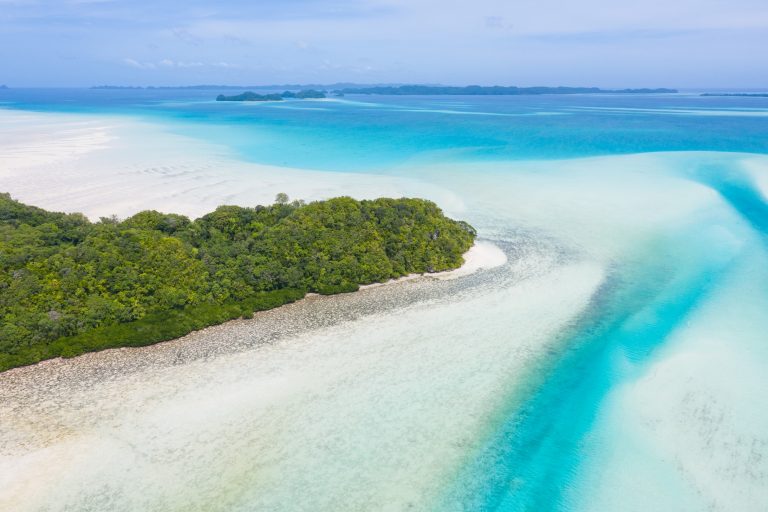 Palaos ce n’est pas que les Rock Islands hein. On pourrait s’en lasser. Non ils ont aussi des îles paradisiaques « normales ». Plates avec des grands bancs de sable et des cocotiers. Vous voilà rassurés ? Celles qu’on a choisi d’aller voir se méritent un peu. C’est l’archipel de Kayangel, tout tout …