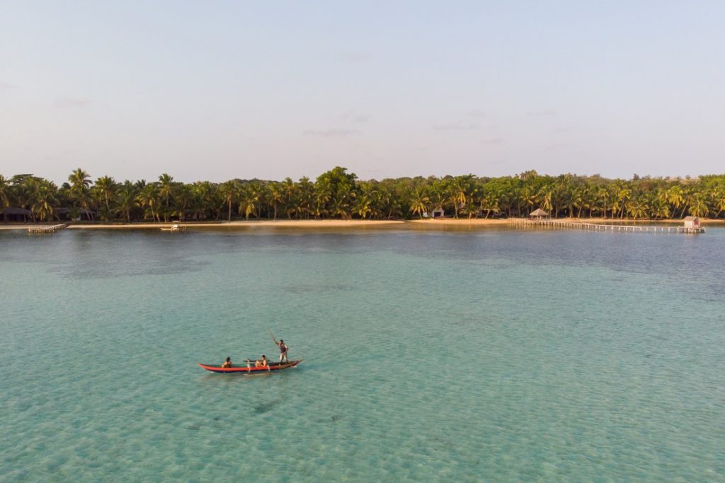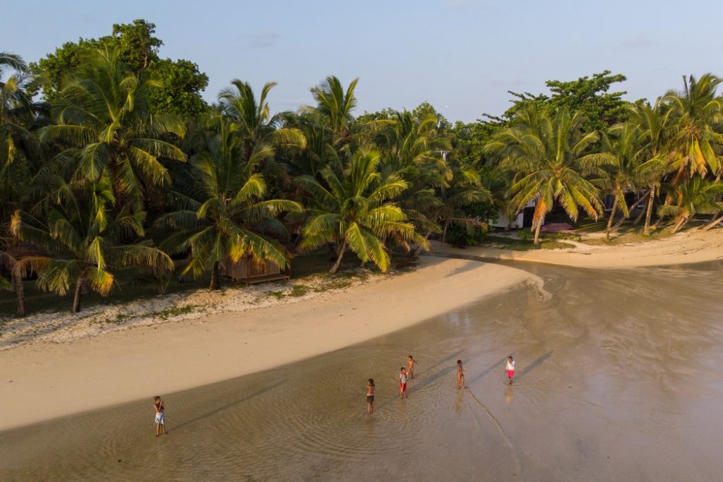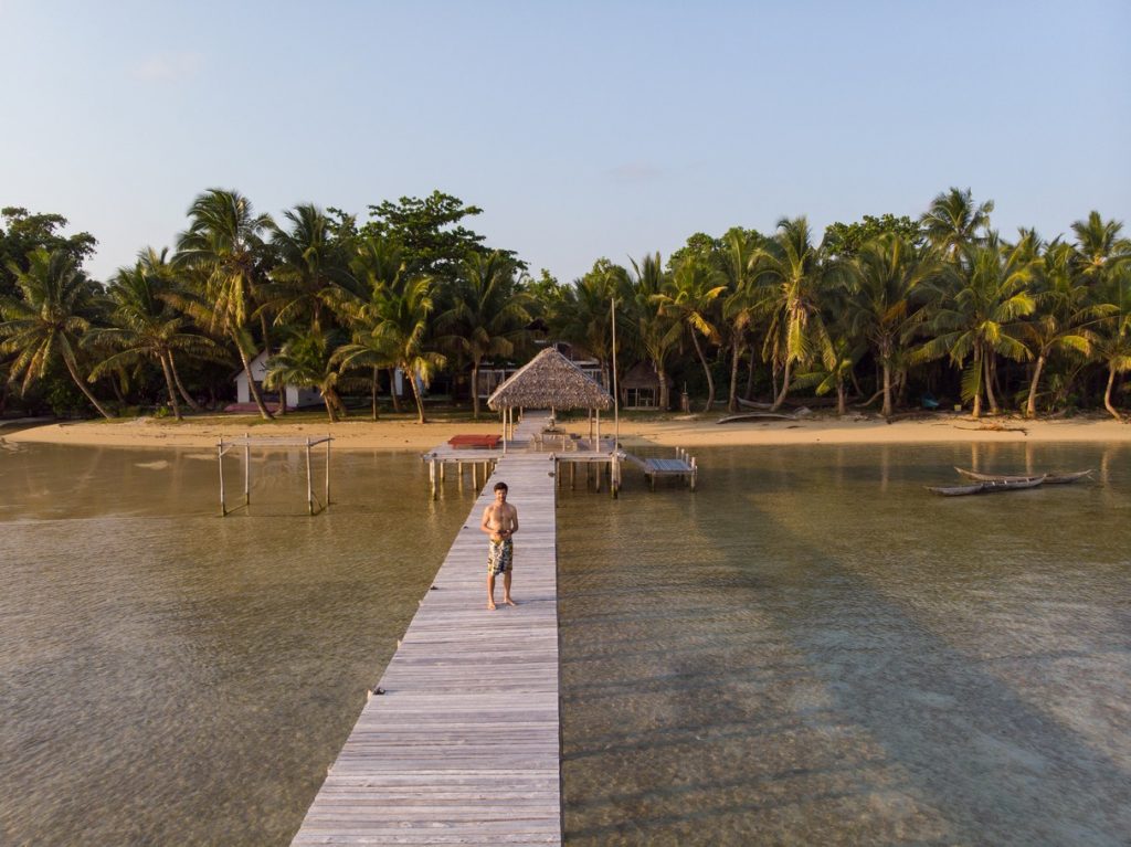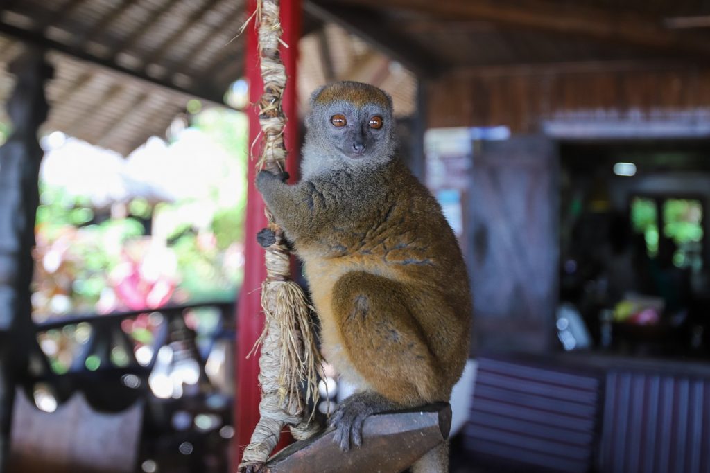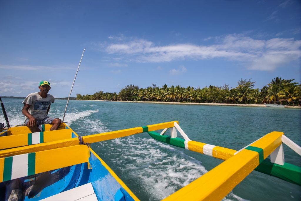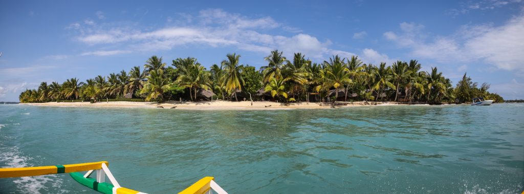 4h30 nous sommes avec nos sacs en bas de l’hôtel. Ponctualité malgache, rien à redire, 4h32 le bus est là. 5h nous buvons un café devant l’agence pendant que les gars bâchent les sacs sur le toit, 5h30, zoubida, c’est parti pour 6h de bus jusqu’à Ivongo, sur la côté tout au nord, puis de là un bâteau nous transfère sur Sainte-Marie, île de Grâce. Là, on prend un TukTuk en direction du sud de l’île, sur la route on s’arrête déjeuner dans un délicieux petit resto, TukTuk encore jusqu’à la pointe sud et puis là, enfin, (non on est pas arrivé), notre dernier moyen de transport, pirogue à moteur, pour rejoindre le paradis sur Terre. Alors oui, on s’en tapé la misère du transport sans fin, un mental d’acier, pour arriver là, sur l’ïle aux Nattes. Une mini-île sans aucun moyen de transport, juste au sud de Sainte Marie. Je peux vous dire que l’arrivée est irréelle. On fait tout le tour de l’île dans un magnifique lagon, l’eau est incroyable, au loin les vagues se fracassent sur le récif, sur notre droite défilent cocotiers et petits bungalows les pieds dans le sable, pour finalement arriver sous de magnifiques arbres sur la petite plage de notre hôtel, les Lémuriens. Notre bungalow est parfait, petite plage privée, ponton en bois en mode Tahiti, terrasse, resto, cocktails délicieux, cadre incroyable, aucun bruit, aucune nuisance, hyper mais alors hyper loin du monde, le KIF.