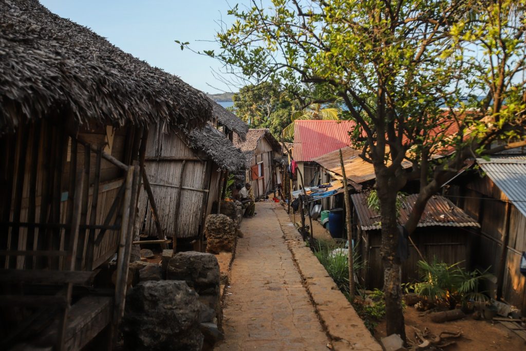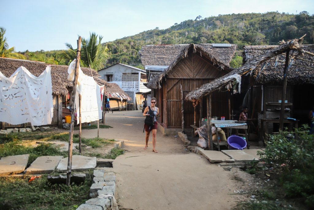 Je vous ai déjà parlé du transport sur Madagascar ? Si non, alors sachez juste que ça pique. En gros de Sainte-Marie on a pris un ferry pendant 1h30 puis le bus jusqu’à Tamatave pendant 6h. Une journée de stop pour travailler pour une ONG locale et on a pris un bus pendant 8h jusqu’à Antananarivo. De là un taxi en retard, une course à pied frénétique de 3km en tong par 35° avec 30kg sur les épaules pour chopper in extremis un bus qui mettra 23h pour rejoindre Ankify où on saute dans une vedette pour Nosy Be qui dure 35mn où l’on reprend aussitôt un bateau pour Nosy Komba. Voilà, on y est.