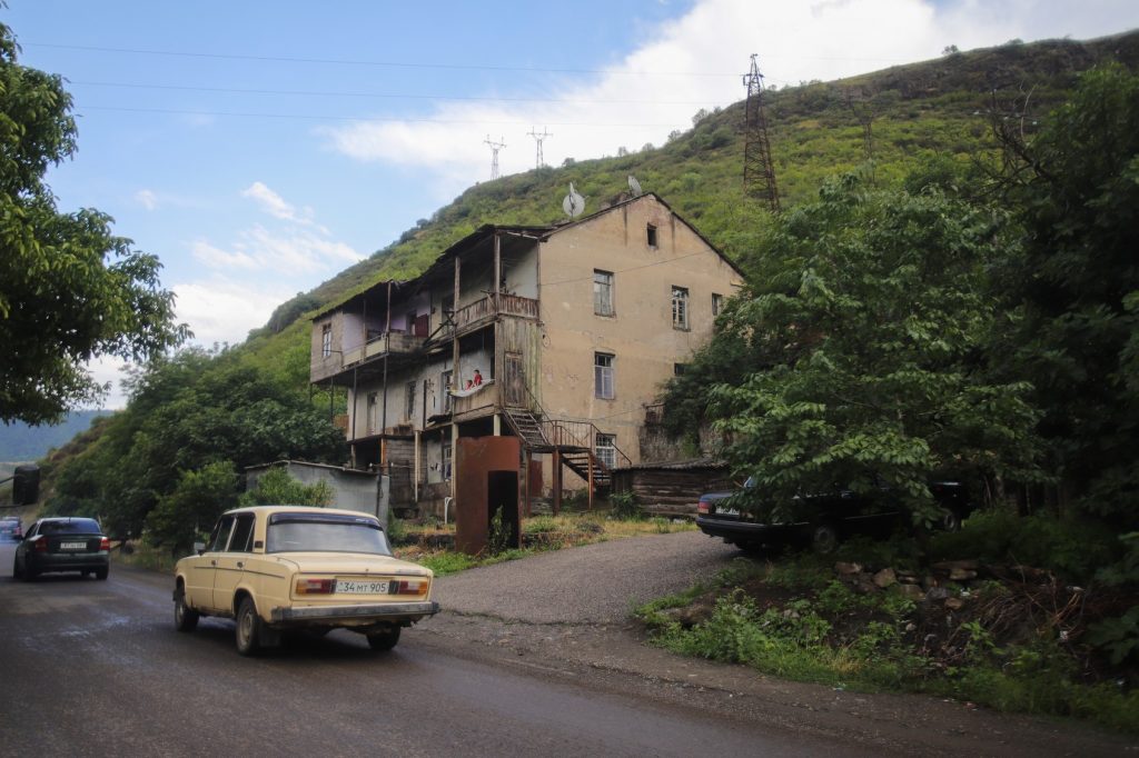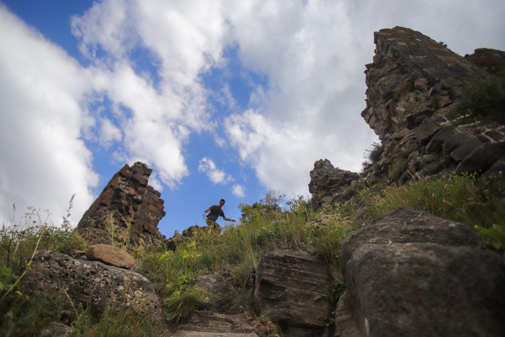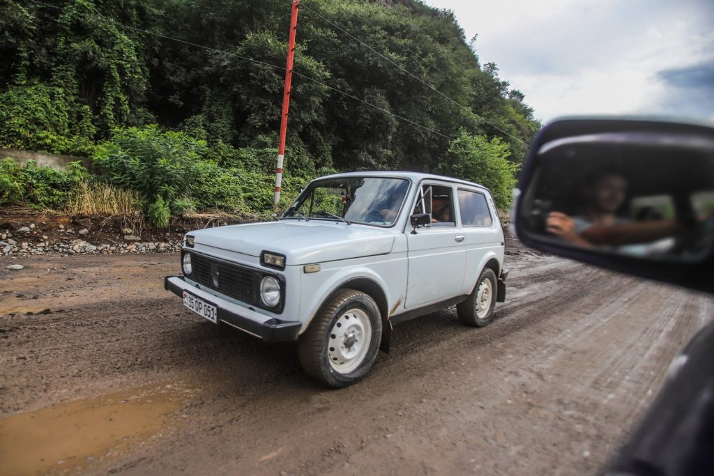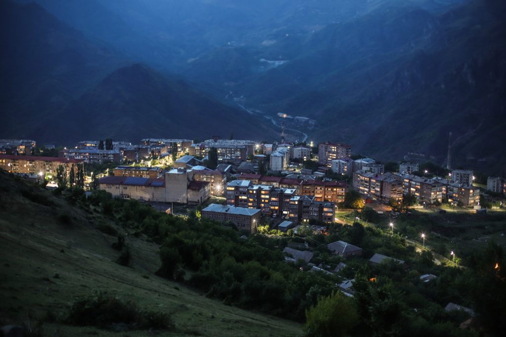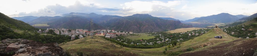 Alors par contre la nature est présente, on avance dans la vallée de la rivière Debed qui a creusé un profond canyon au milieu des montagnes et des arbres. Pas grand monde sur la route, pas grand monde tout court d’ailleurs. On fait un stop pour visiter un vieux monastère à Senahin, magnifique et nous sommes tout seul avec une belle lumière de fin du jour. Un peu plus haut on aperçoit une chapelle toute seule, un coup de 4×4 un peu énervé et nous y voilà, ce sera notre spot pour la nuit, on domine le village, la ville, le canyon.