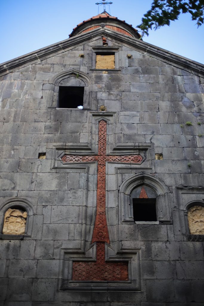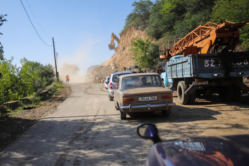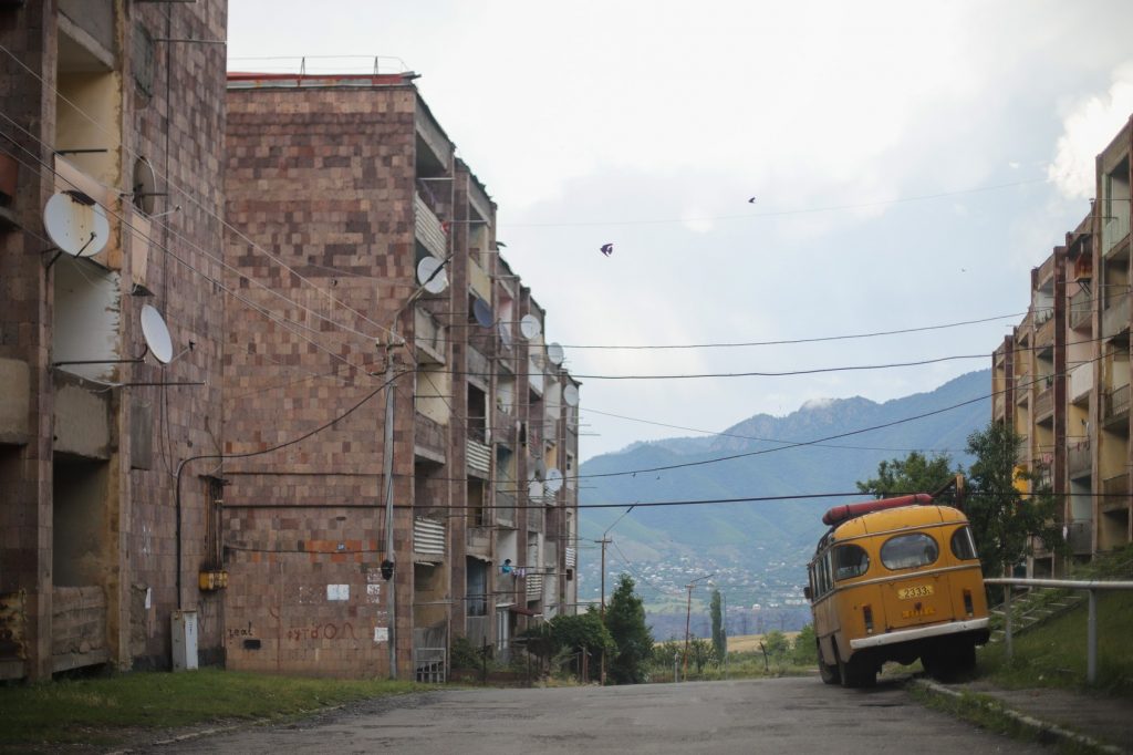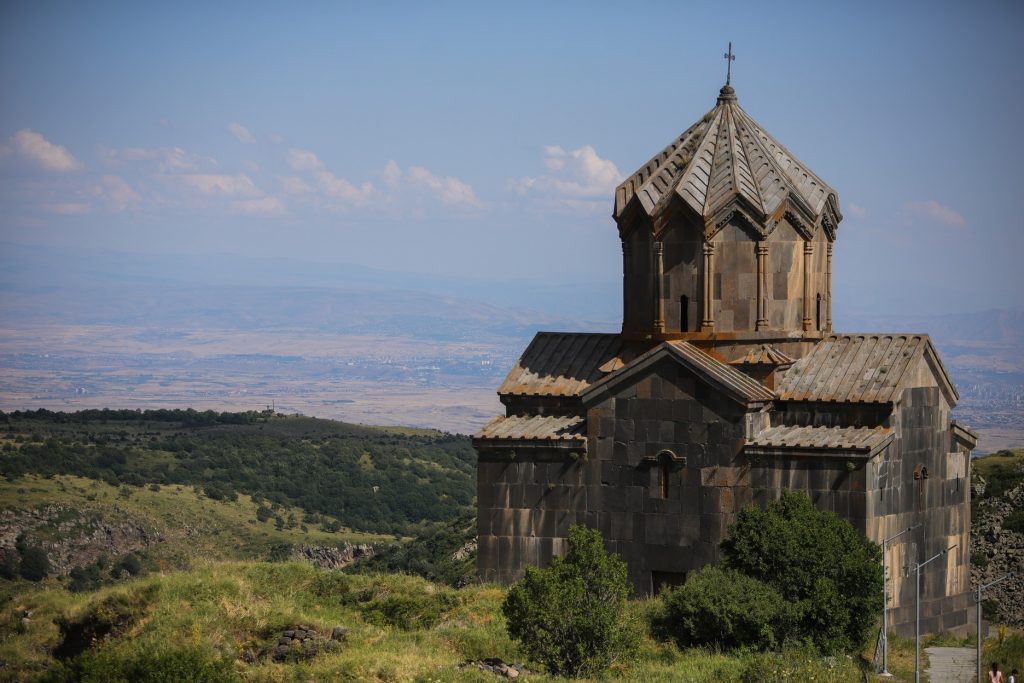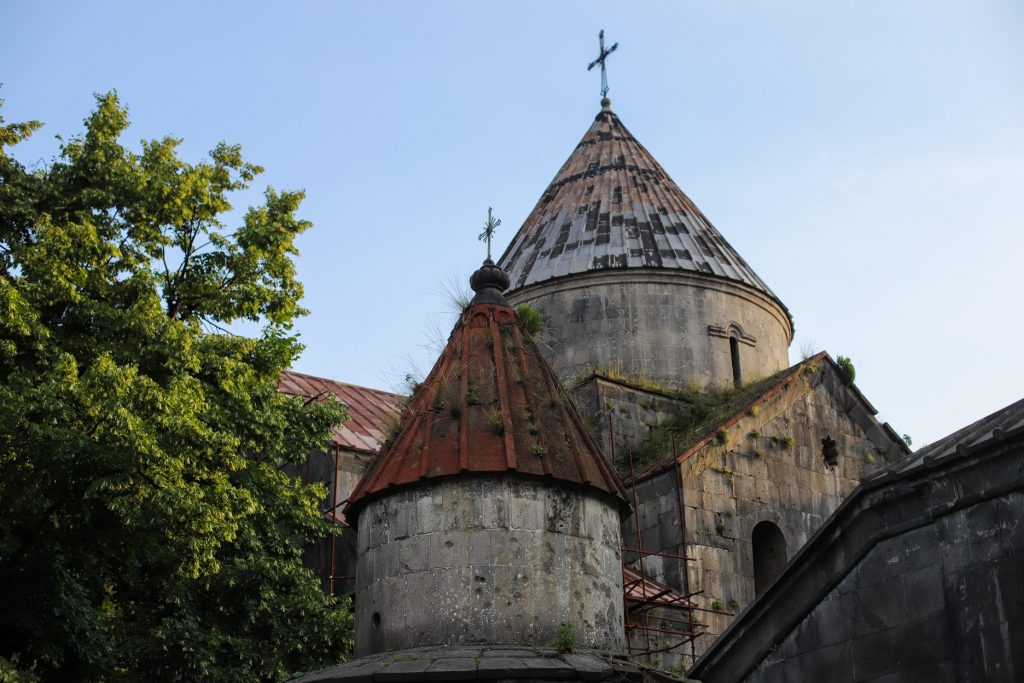Alors par contre la nature est présente, on avance dans la vallée de la rivière Debed qui a creusé un profond canyon au milieu des montagnes et des arbres. Pas grand monde sur la route, pas grand monde tout court d’ailleurs. On fait un stop pour visiter un vieux monastère à Senahin, magnifique et nous sommes tout seul avec une belle lumière de fin du jour. Un peu plus haut on aperçoit une chapelle toute seule, un coup de 4×4 un peu énervé et nous y voilà, ce sera notre spot pour la nuit, on domine le village, la ville, le canyon.