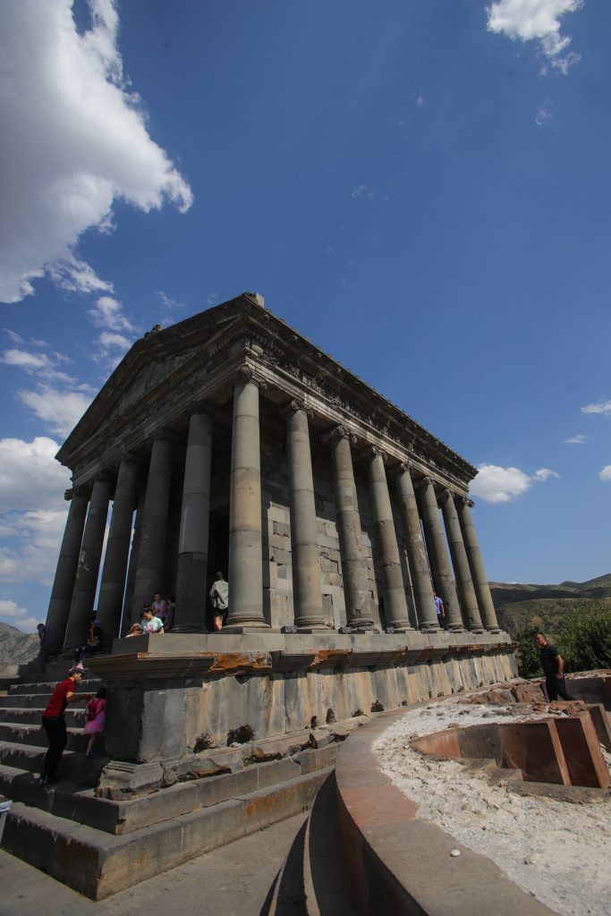 On prend la route de la capitale, Erevan mais un peu avant on bifurque au sud pour aller voir un vestige qui a la côte, dans le petit village de Garni, à flanc de falaise se trouve une vieille acropole. Visite rapide mais chouette lieu. On s’arrête aussi dans un immense cimetière qui domine Erevan. Ici les tombes sont impressionnantes, très grandes et avec la photo du défunt gravée dans la pierre !