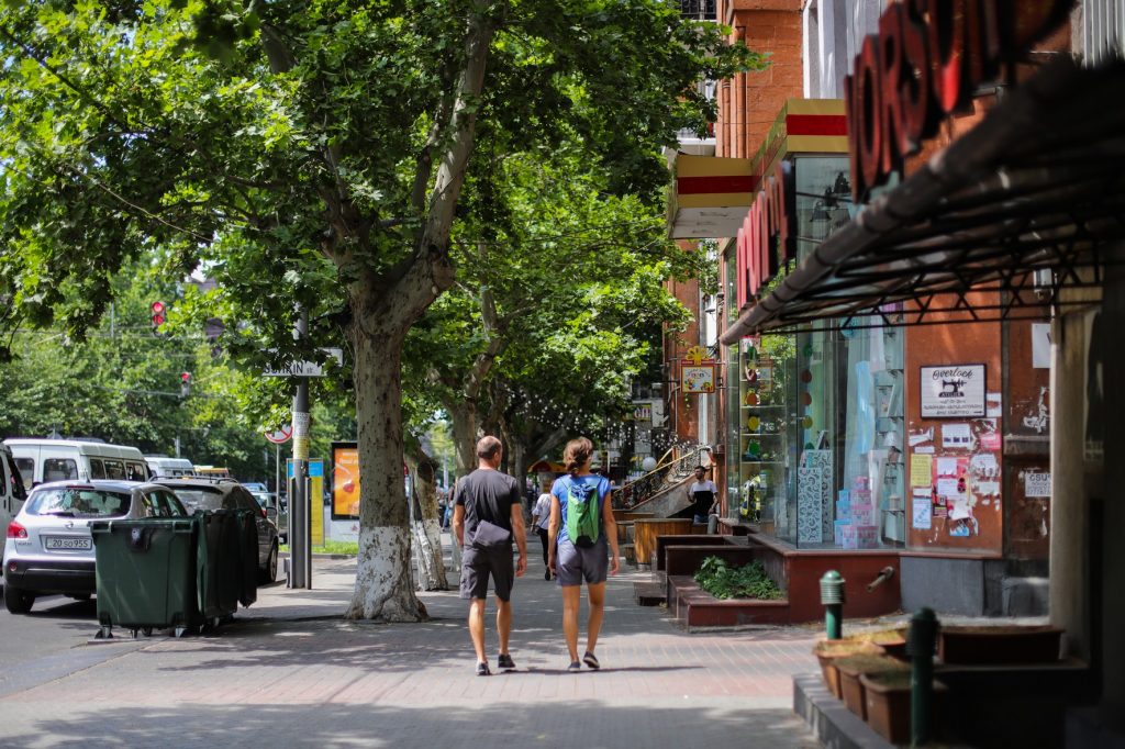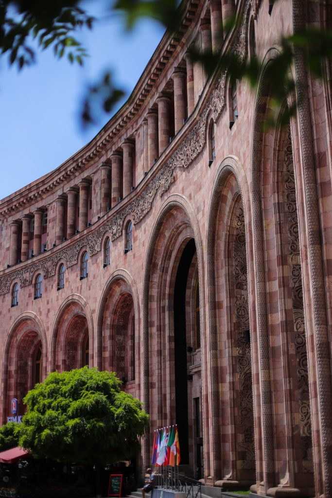 Arrivée à Erevan sous une grosse chaleur. On se boit un coup dans une rue de la soif très agréable pour chopper un peu de wifi et trouver un hôtel, et directement cette ville nous plait. Très agréable, vivante, ombragée, des fontaines d’eau potable à chaque coin de rue, des arbres, des terrasses, des petits stands à café tous les 50m, il y règne un bon vivre qu’on pourrait retrouver dans un mélange de Paris et de Berlin. On trouve forcément quelques affiches de Charles Aznavour par endroits. Le soir délicieux resto local où on s’en met plein la panse pour presque rien. On profite encore du lendemain matin pour arpenter la ville, le centre ville est faisable à pied et c’est bien agréable.