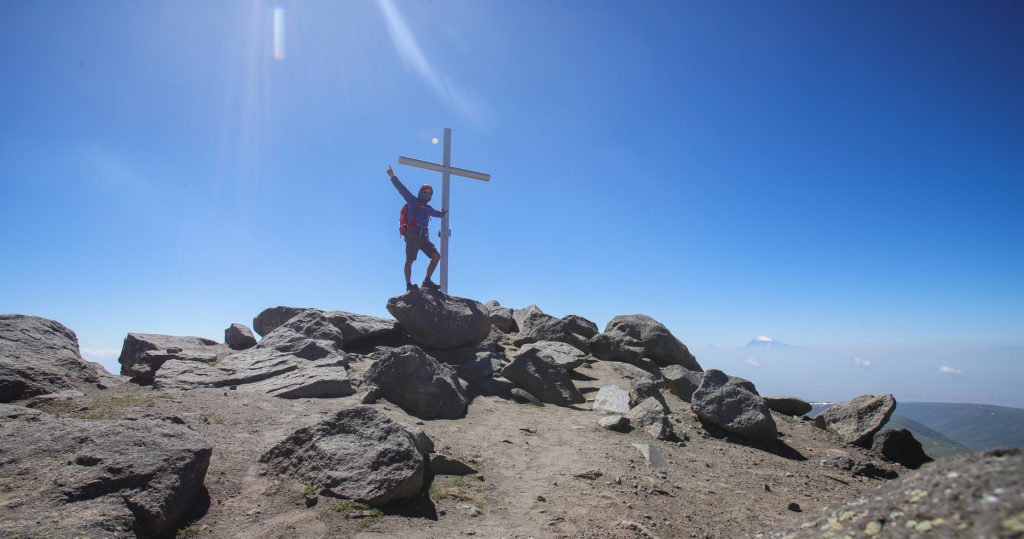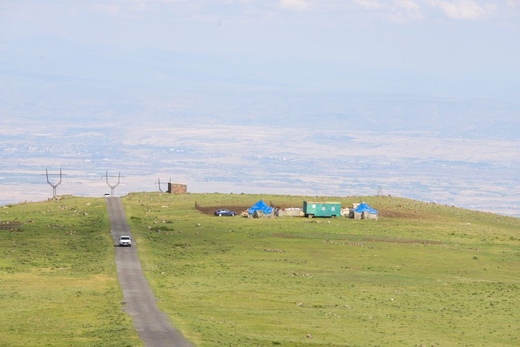 Un petit apéro et une bonne platrée de pâtes, on passe une nuit bien fraîche à cette altitude et on se réveille à 7h, à la fraîche aussi pour partir affronter la bête. L’Aragat a 3 sommets principaux, le sud est le plus bas (3900m) et le plus facile et direct, le nord est le plus haut, 4100m mais aussi le plus difficile et technique, le ouest atteint 4009m, il est joignable facilement depuis le sud et c’est celui-là que nous montrons ! Chouette paysage, vue l’impressionnant Ararat en face, précipice en arrivant en haut, une montée très raide pour atteindre le sommet et une vue à 360° sur cette région volcanique. Redescente au 4×4 par une voie improvisée, le tout plié en 5 heures.