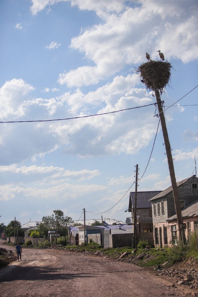 BIM, choc, pourtant on est pas loin mais claque brutale. La route en prend un coup, on cherche le bitume, niveau voiture on est passé sur un 80% de Lada défoncées, niveau villages on est passé sur une ambiance Tchernobyl. L’impression qu’il n’y a plus personne, tout est défoncé ou abandonné. Des grand bâtiments gris fissurés, des tours industrielles d’une époque révolue, de grandes maisons dans un état pitoyable, et des immeubles d’un gris austère improbable où apparement les gens vivent encore. Ici le passage du communisme n’a pas laissé une jolie trace !