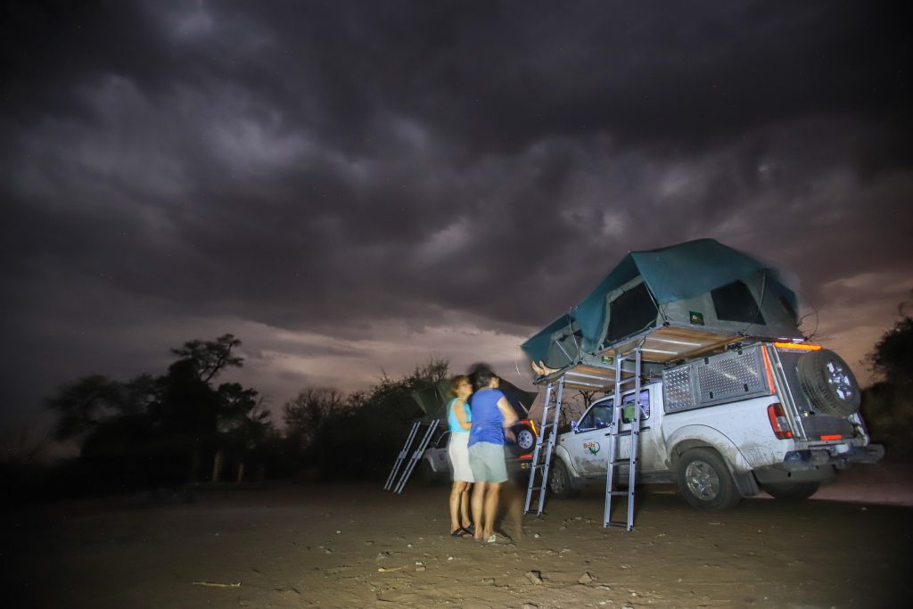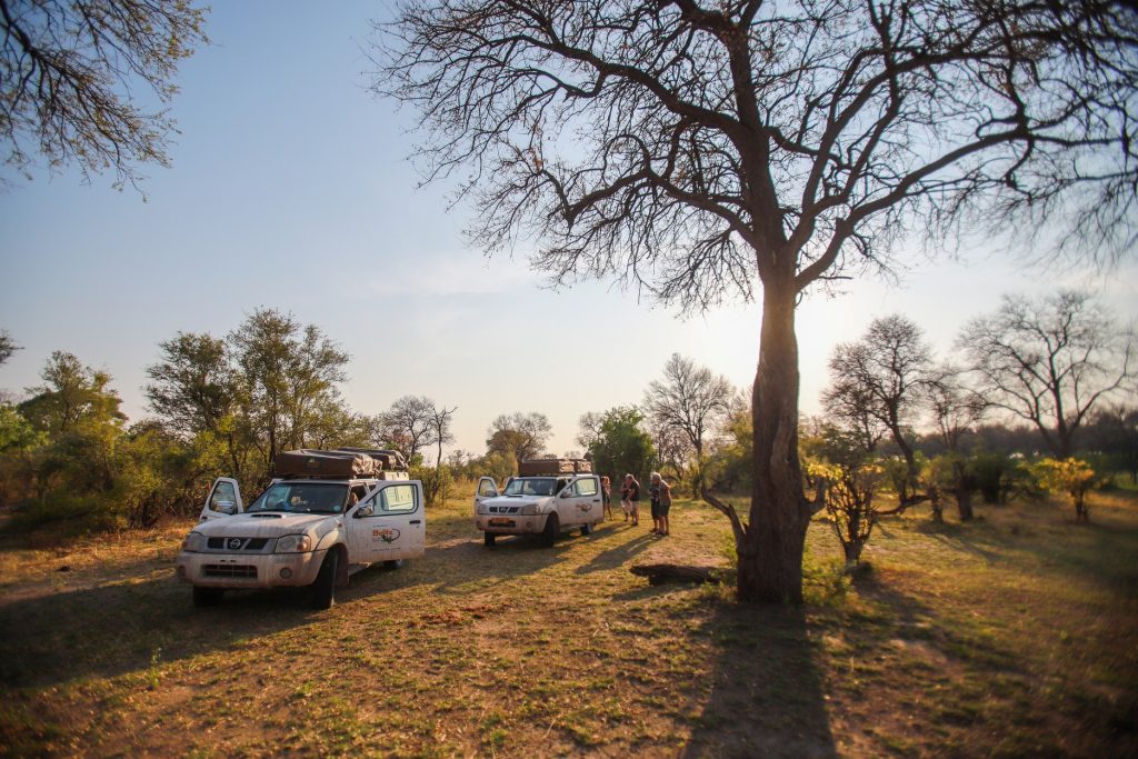 On récupère nos deux 4×4 Nissan tous équipés pour le camping en autonomie et on passe notre première nuit à Maun histoire de se reposer du long trajet et de la chaleur à laquelle on était plus habitué. On est en novembre, on est parti sous la pluie froide française pour arriver ici par 40° !