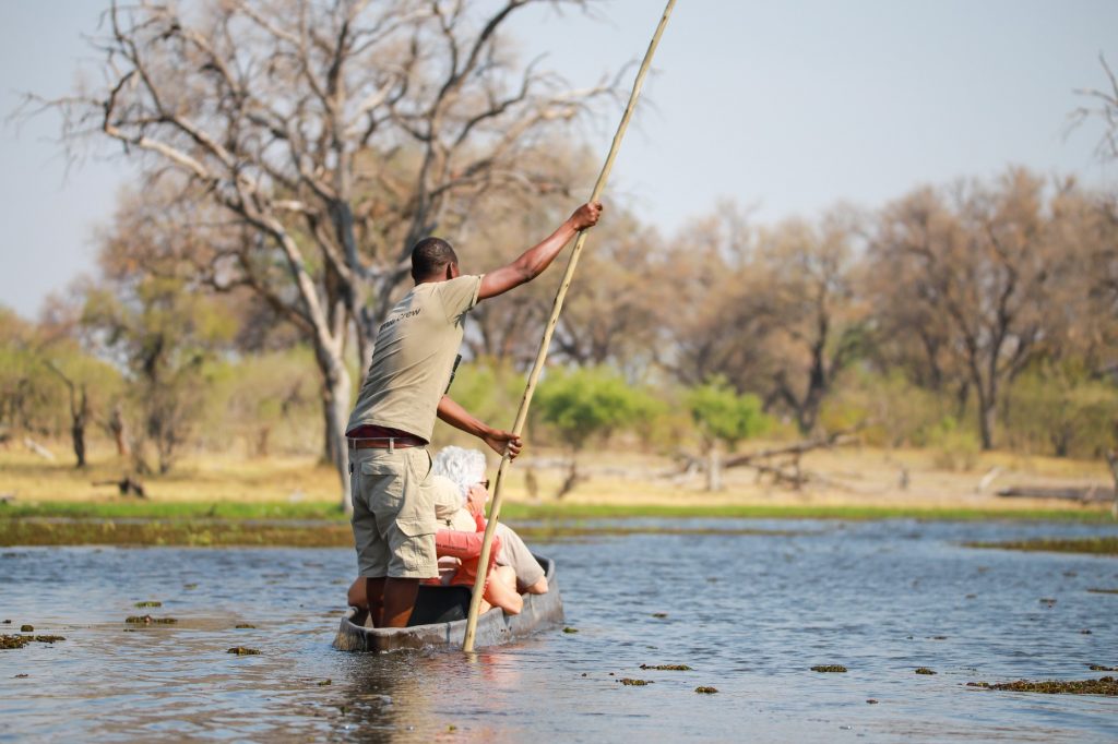 La tradition veut que l’on parte un peu explorer le delta en Mokoro, le moyen de transport traditionnel qui permet d’approcher les animaux dans le calme et d’entendre tous les sons du delta, des oiseaux. Un moment de détente au fil de l’eau mais où le soleil tape fort !