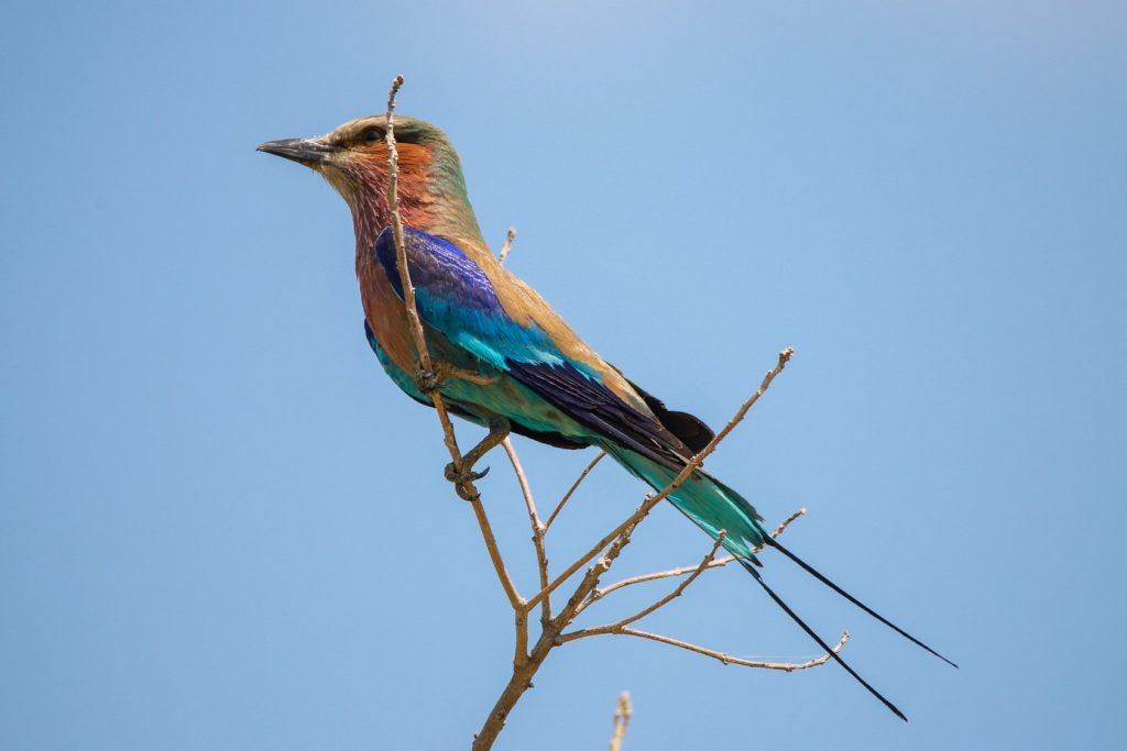 Après un bon petit déjeuner et avoir fait les courses pour toute la première semaine de voyage, on prend la piste en direction du delta dans la zone de Khwaï. Nous ne sommes encore bien loin de l’entrée de la réserve alors qu’on voit déjà un bon nombre d’animaux sauvages, autruches, zèbres, puis éléphants et girafes !