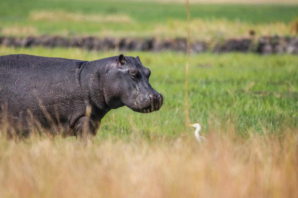 Le lendemain on part explorer la fameuse réserve de Moremi par le côté est, le long de la rivière Khwai (oui on a passé le pont de la rivière Khwai aussi !). Au bord de l’eau on découvre tous les herbivores possibles, girafes, zèbres, hippos, gnous, et deux des bigs five, l’éléphant et le buffle. Belle observation aussi à hippo pool où l’on voit de près crocodiles, hippos, pélicans, marabous etc…