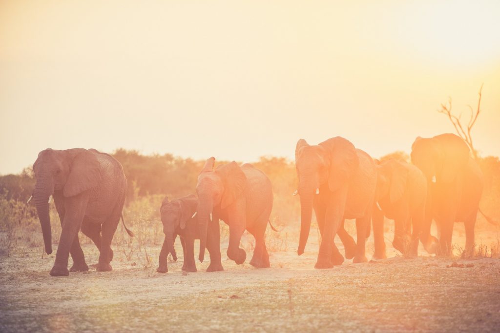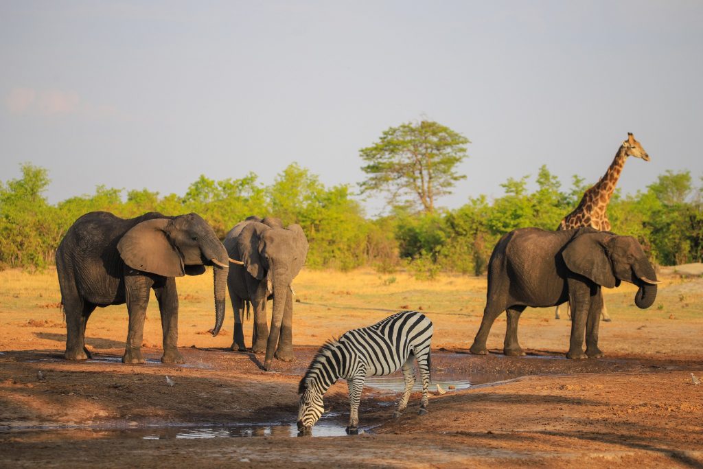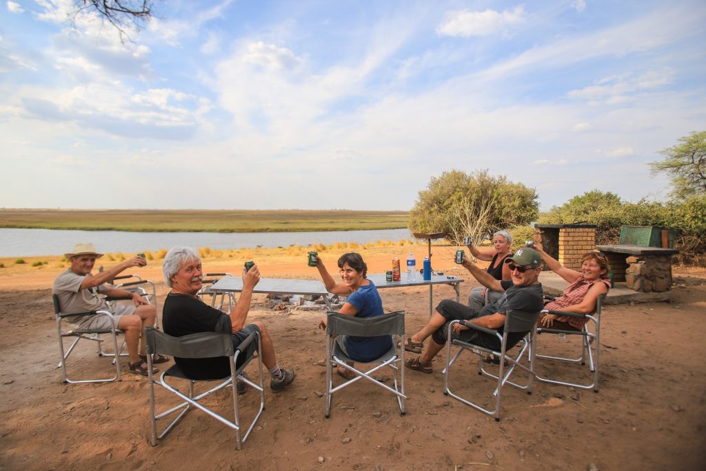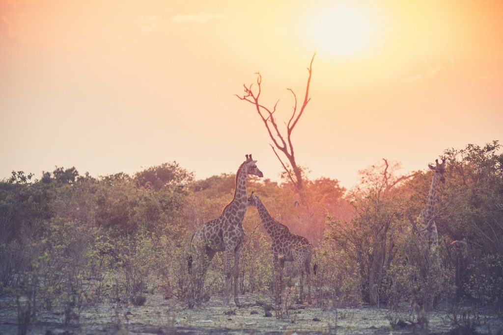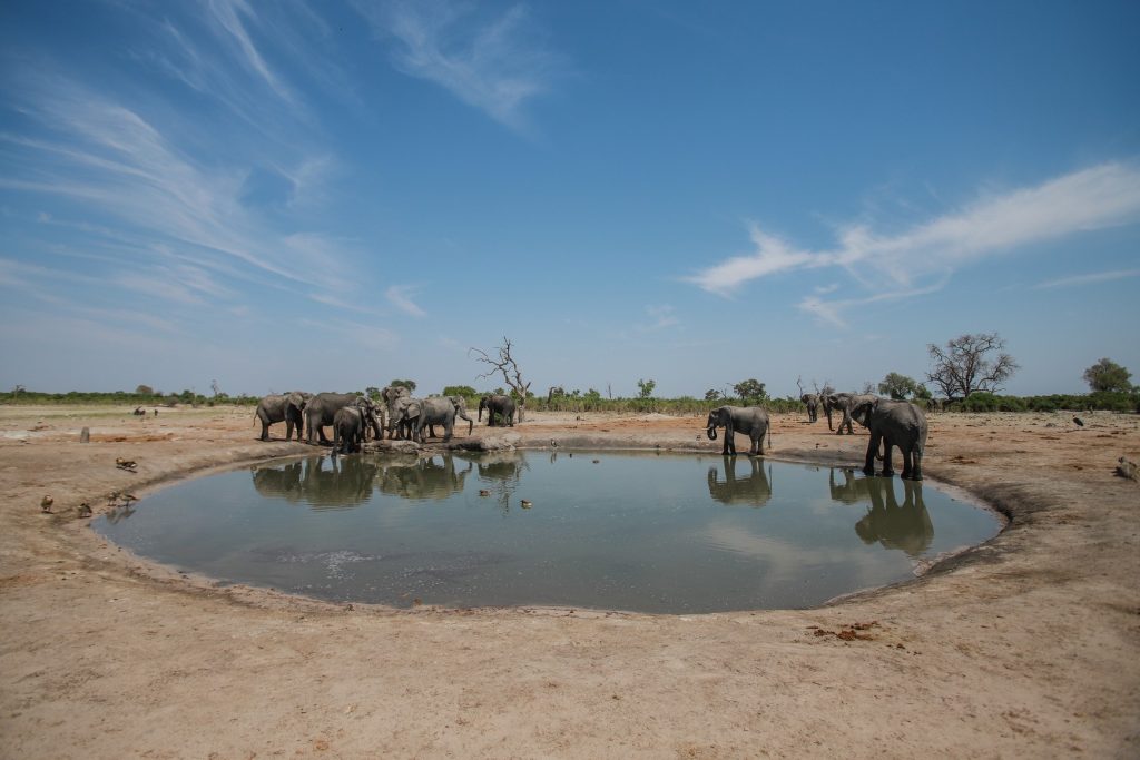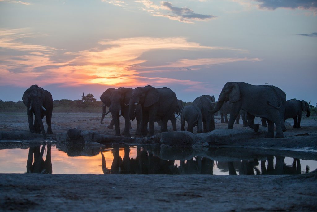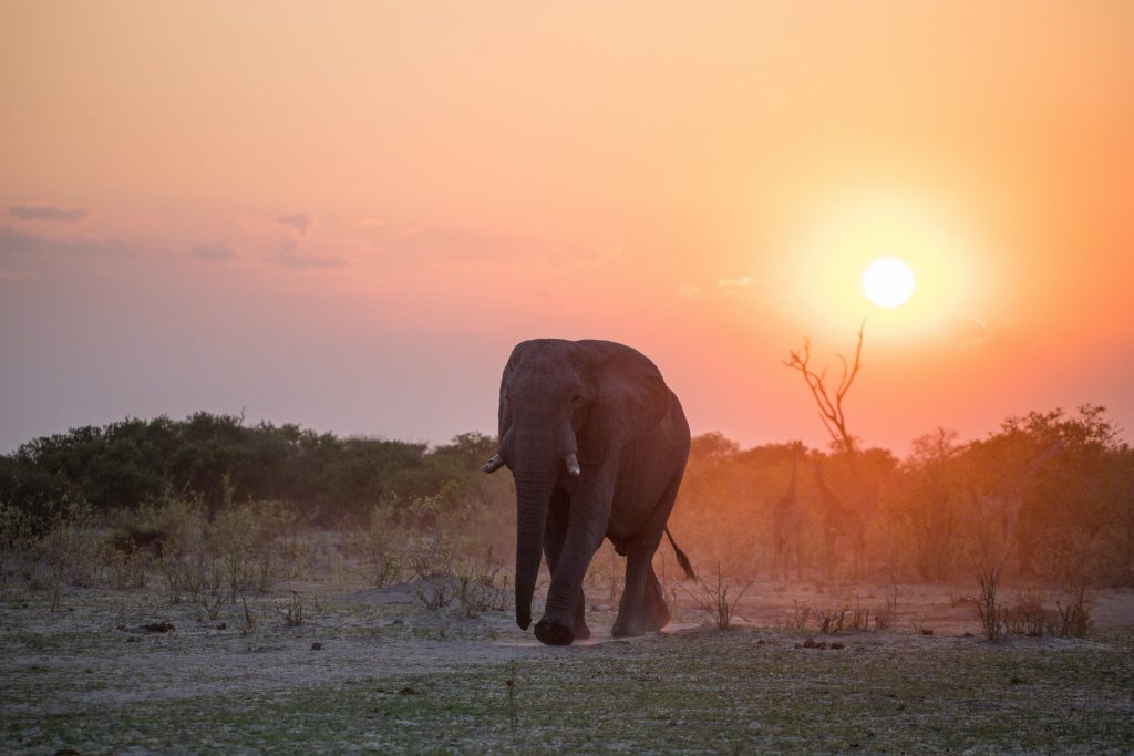 Savuti nous permet de nous reposer un peu en y restant deux jours, cela permet aussi de mieux connaitre la réserve et de retourner directement aux points stratégiques. La nuit on entend les impressionnants grognements des éléphants non loin de là qui doivent se chamailler. Réveil à 5h pour découvrir un groupe de girafes en train de boire (enfin car ça leur prend du temps !) alors que les premiers troupeaux d’éléphants commencent à arriver en maîtres au point d’eau.