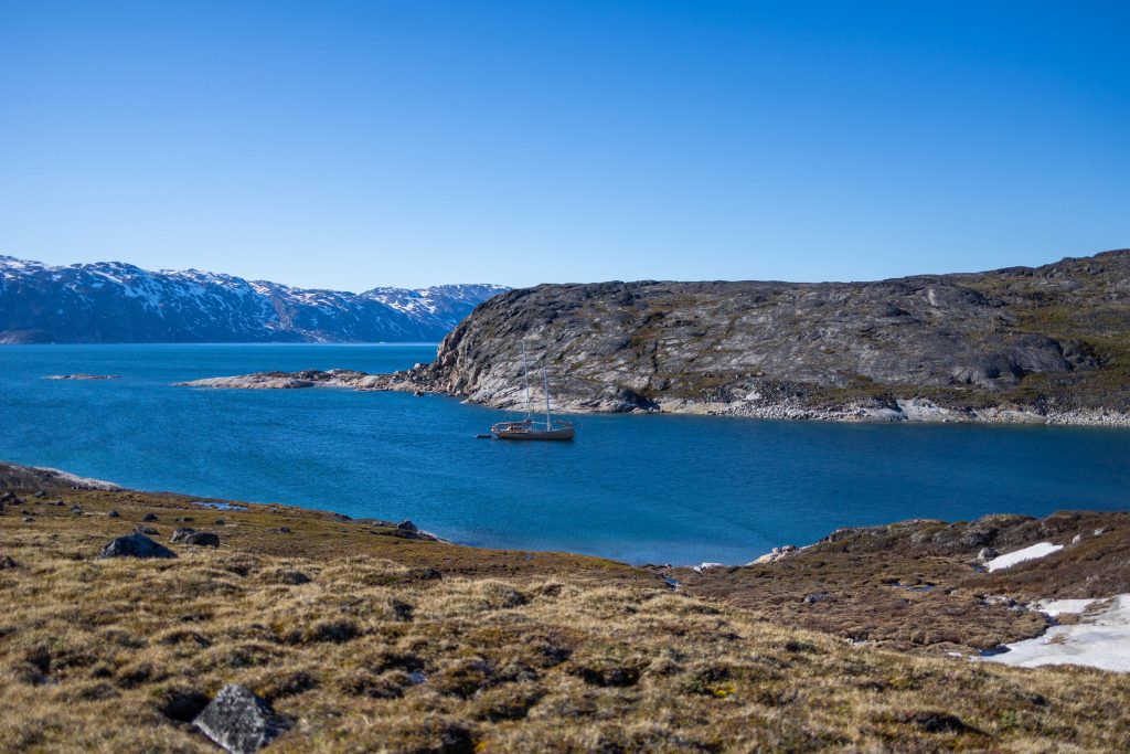 Nous sommes un groupe de 7 touristes et après avoir pris possession de notre cabine et avoir passé une première nuit proche d’Ilulissat, notre voyage débute enfin. Petit passage dans l’Icefjord en bateau, on l’avait fait la veille avec une agence jusqu’à minuit dans une lumière et un paysage irréel, mais le faire en voilier au petit matin à également son charme !