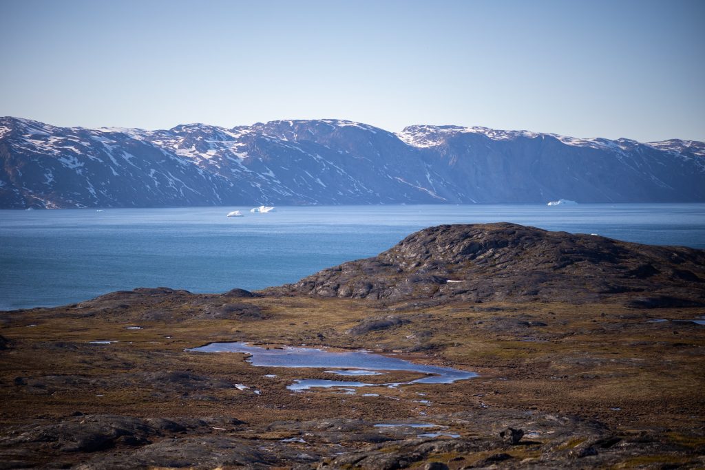 On continue notre route au nord au milieu des montagnes, on croise rapidement un iceberg immense et magnifique tout en arches et couleurs bleues, impossible de rester insensible à de telles monuments de beauté. Il reste encore pas mal de neige en hauteur et sur les faces nord. Il faut dire qu’en hiver cette zone est dans la banquise et qu’il a neigé très tard cette année. Finalement la Louise mouille dans une petite baie sauvage au milieu de nulle part. On nous débarque en zodiac pour une balade au milieu de se désert sauvage. Le sol est une épaisse tourbe gorgée d’eau. D’ailleurs l’eau est omniprésente sur ce sol, cascades, gouilles et lacs sont omniprésents. Pourtant on ne croise aucun animal, quelques crottes indices d’une vie, certes, mais rien de vivant, même pas d’insectes hormis les nombreux moustiques. Ici apercevoir des animaux polaires se mérite !