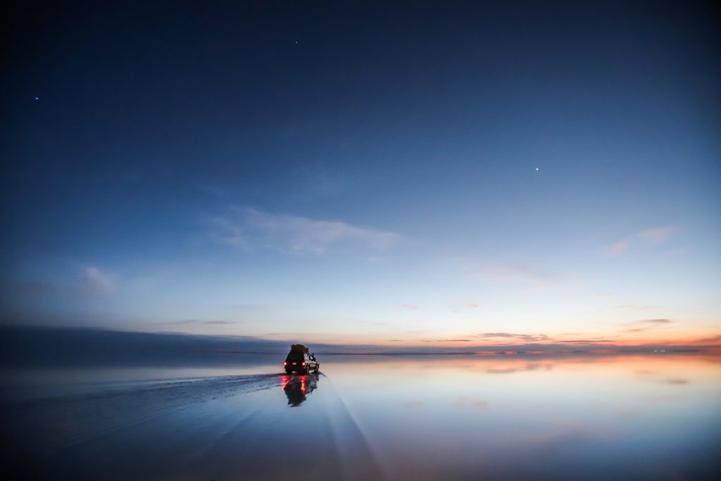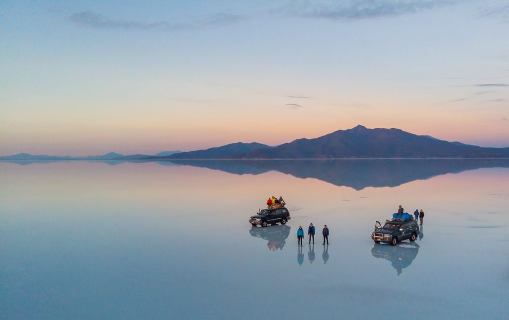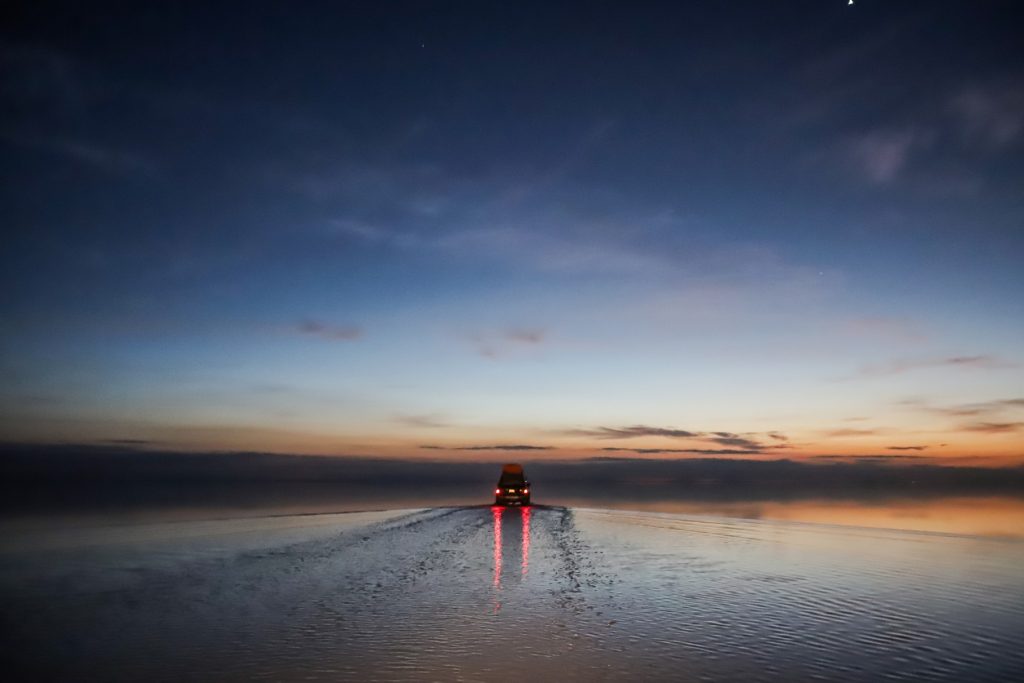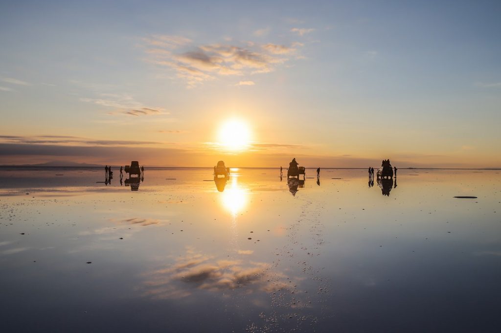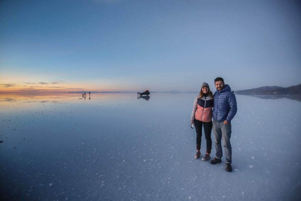 Réveil à l’aube pour découvir une seconde fois le fabuleux salar d’Uyuni, mais cette fois avec de l’eau, encore plus impressionnant !!