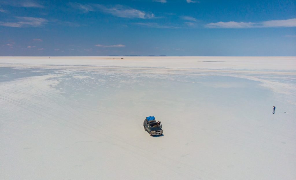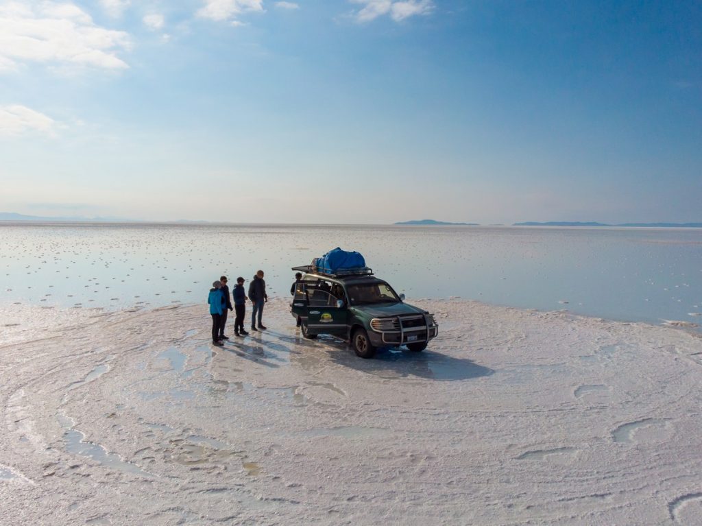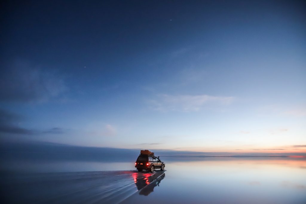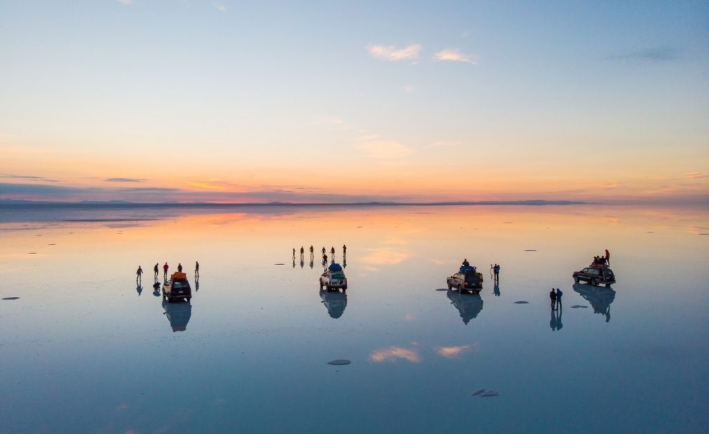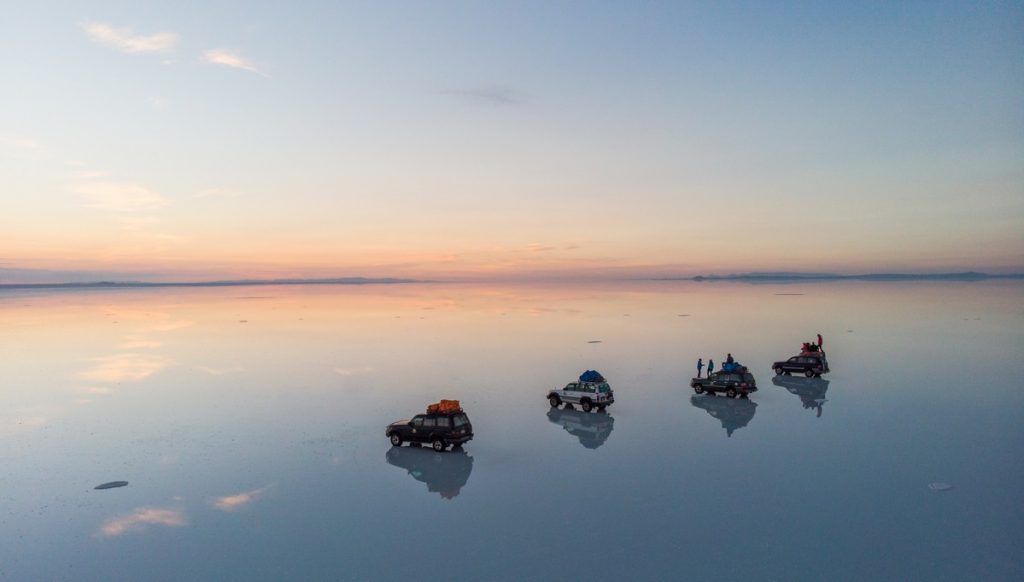Réveil à l’aube pour découvir une seconde fois le fabuleux salar d’Uyuni, mais cette fois avec de l’eau, encore plus impressionnant !!