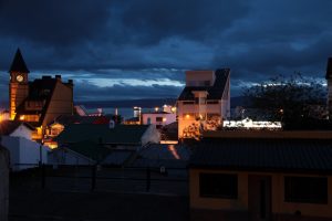 Ushuaïa c’est très tourisque. Bon point mauvais point, en Patagonie bon point je dirai, ainsi un effort est fait sur les constructions, la propreté, les excursions, la gastronomie et donc l’image de la ville. Les rues sont en pentes à la SanFranciscaine, ils faut dire que les montagnes sont tellement proches de la mer que la route descend droit de la montagne pour se jeter dans le port…