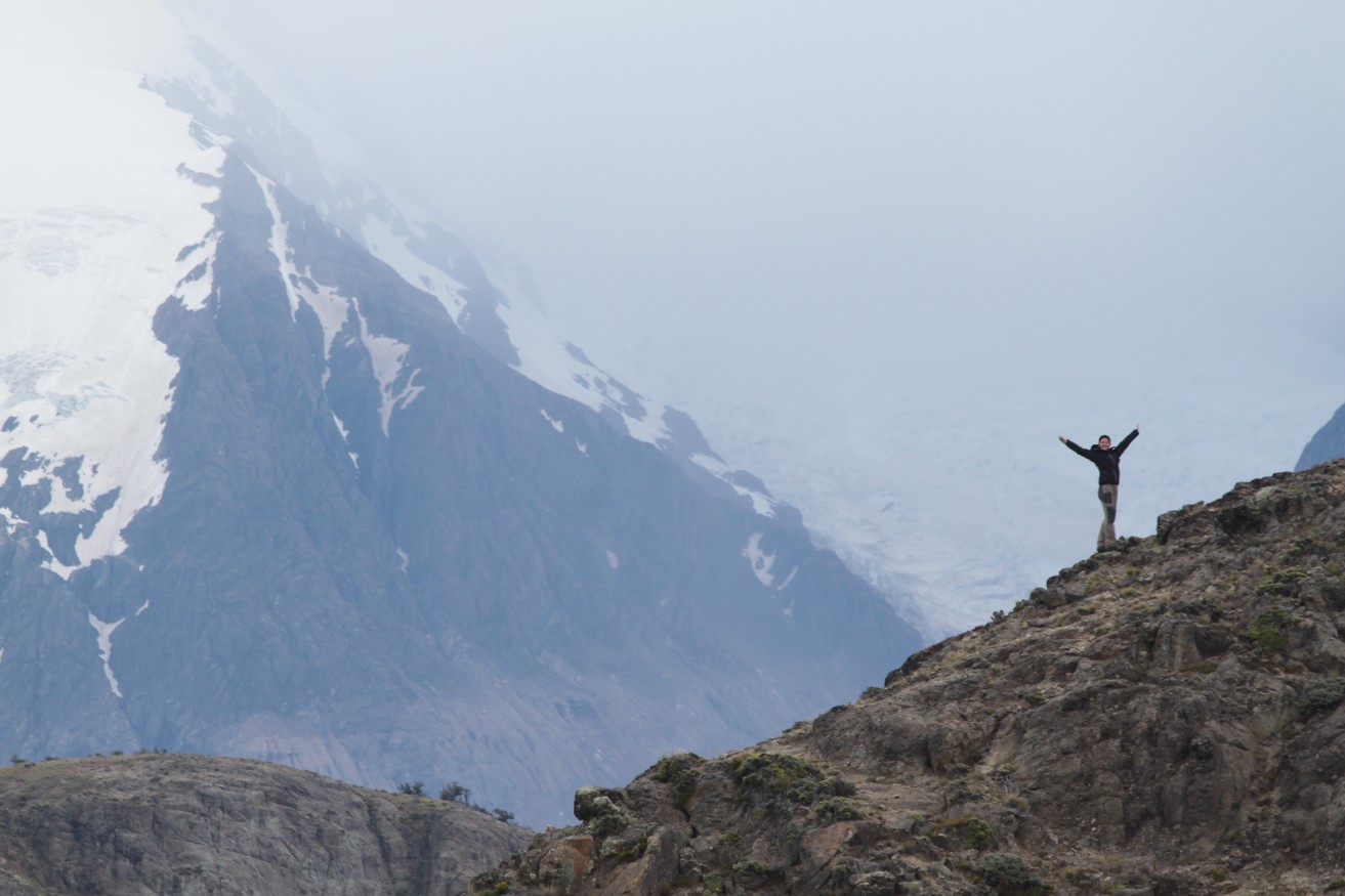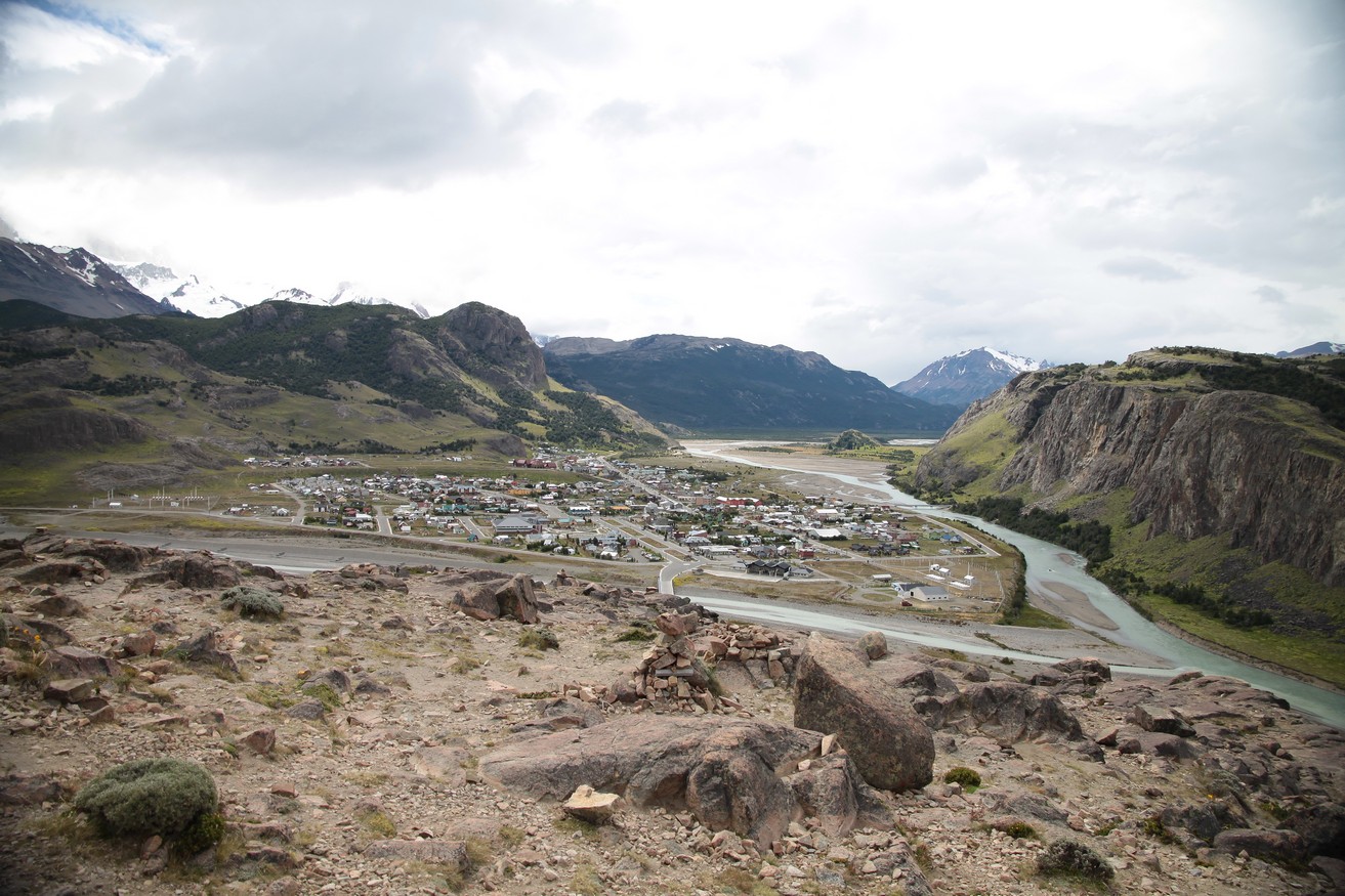 Ici on vient marcher et admirer le paysage. Et quel paysage. Le village est situé directement sous le mythique Fitz Roy, une montagne vraiment impressionnante car c’est en fait un énorme rocher en forme de pic culminant à 3400m d’altitude (quand on sait que les environ sont à 400m d’altitude ça fait bizarre dans le panorama…). Il est entouré d’autres falaises et pics tous plus impresionnants les uns que les autres, si raides et abrupts qu’on se demande comment des gens ont déjà réussi à atteindre le sommet. D’ailleurs le Fitz Roy reste encore un des sommets les plus difficiles au monde malgré sa faible altitude. Ici en plus de la difficulté s’ajoute la rudesse du climat. Extrêmement venteux et froid, rares sont les jours ou l’on peut l’affronter.
