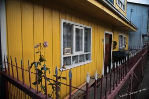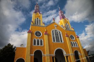 Bienvenue chez les chilotes. Sur leurs îles où il pleut tout le temps, nous sommes au bord du pacifique et au nord de toutes les îles de Patagonie. L’île est réputée pour ses belles églises tout en bois classées au patrimoine mondial de l’Unesco, ses maisons très colorées et sur pilotis, et son poisson. Ici on naît dans une barque et le plat de base Ô joie-merci-de-mavoir-conduit-ici est le saumon. Youpi !