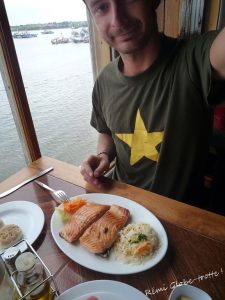 Nous avons débarqué tout au sud à Quillon (j’ai mangé un saumon) puis remonté dans la ville principale qu’est Castro. Magnifique église jaune pétante et violette, plus bas on trouve les palafitos, les fameuses maisons sur pilotis dans lesquelles ont ira se balader, puis un centre assez agréable (enfin) avec boutiques et petits restaurants (où j’ai mangé un saumon).