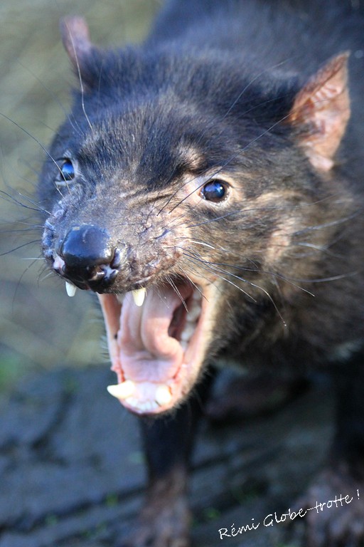 Le lendemain on rend visite au vilain diable de Tasmanie dans un wildlife parc à la campagne. Ca hurle donc bien comme un diable et diable qu’ils sont hargneux quand ils ont la dalle, ils sont trois à se battre pour une patte de lapin dont il ne reste rien quelques minutes plus tard, bon appétit bien sûr !