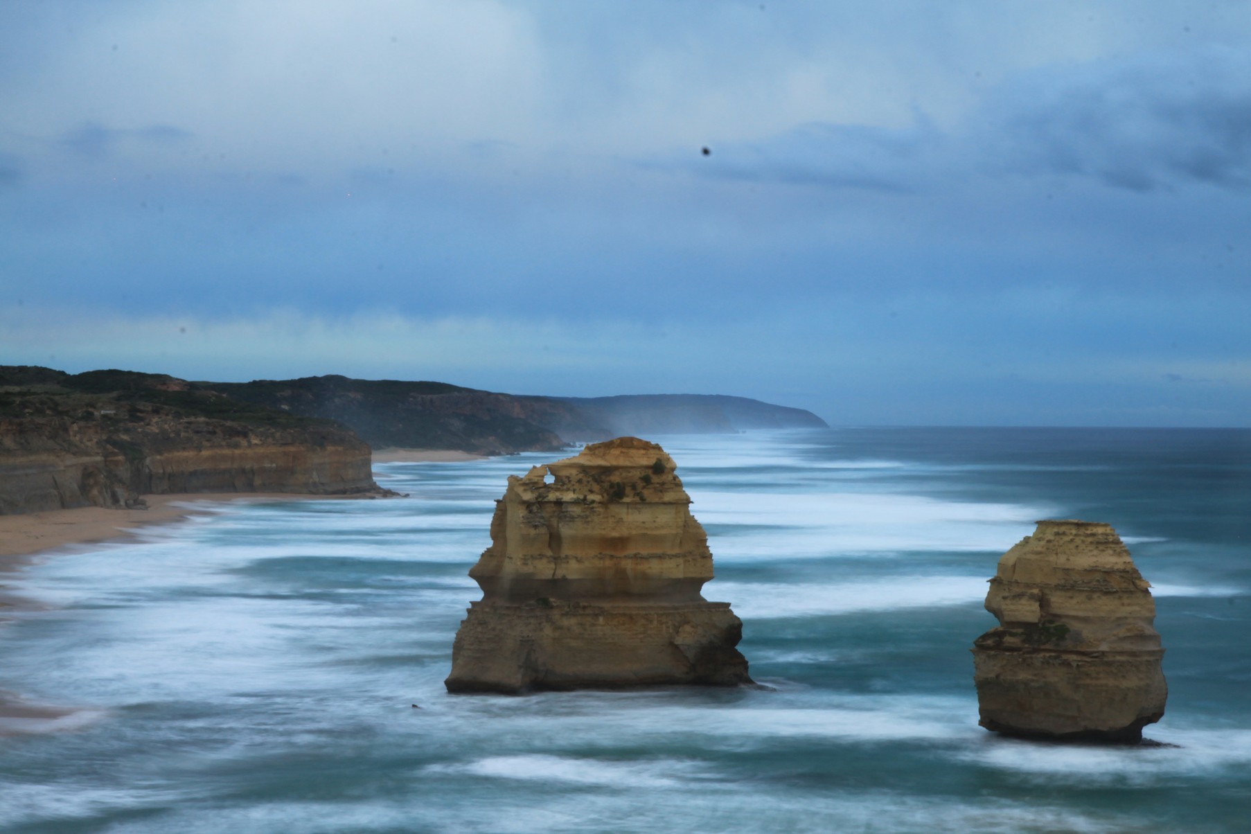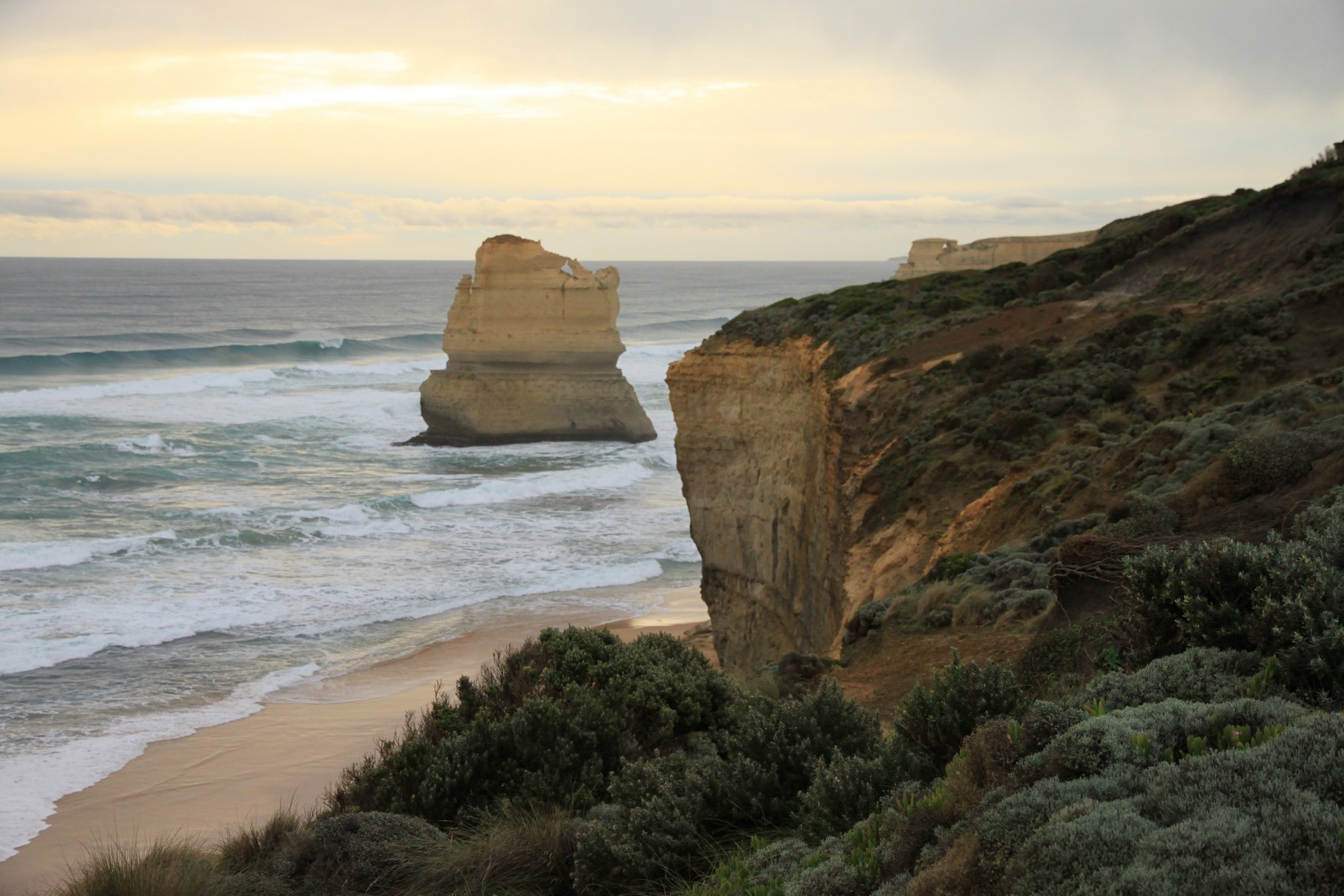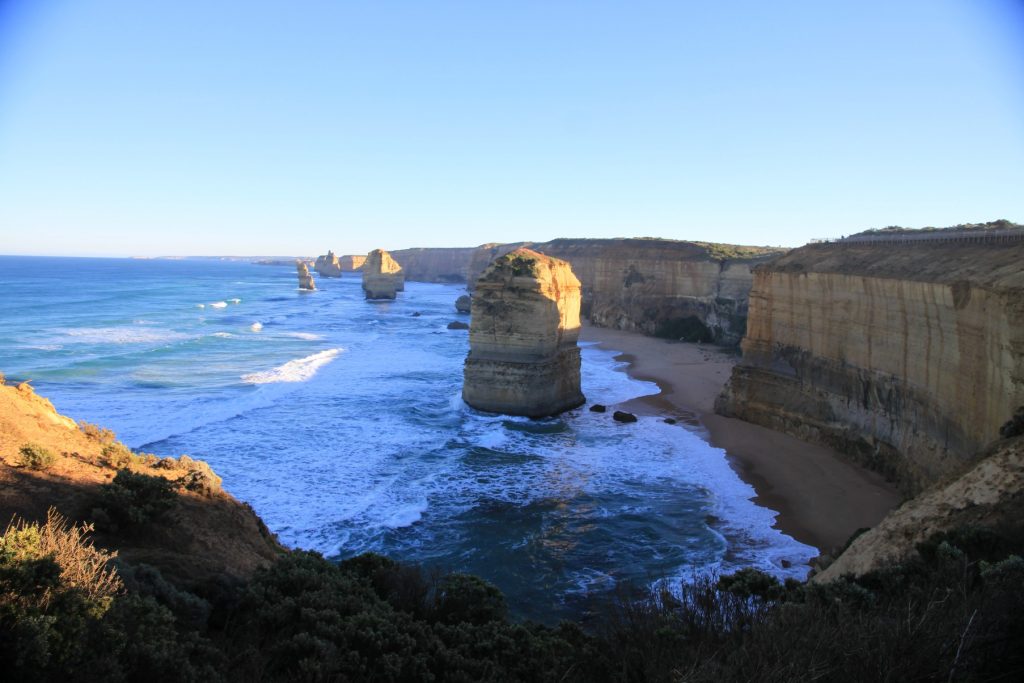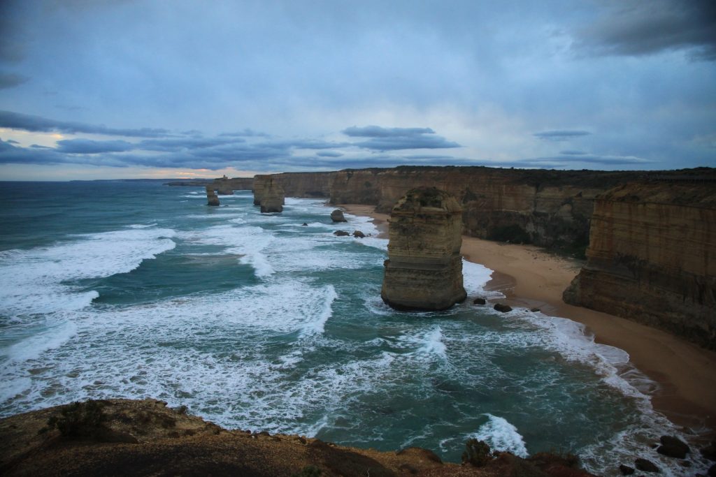 Sur la suite de la route la côte est magnifique. Impressionnante falaise aux tons oranges et rouges en fonction de la lumière. La côte est déchirée par la mer ici violente et le résultat est superbe, arches naturelles, et surtout… les 12 apôtres ! Des blocs de falaises parsemés au milieu de la mer, avec une plage magnifique à leur pied, de toute beauté ! Je n’avais pas eu l’occasion de voir ce site avant et je ne regrette vraiment pas d’avoir choisi de venir ici cette fois !