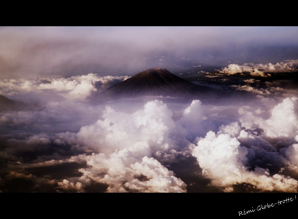 Puis on survole l’Indonésie par Bali, je vois ce que je soupçonne être le Batur qui émerge des nuages, magnifique. Indonésie just wait for me j’arrive !