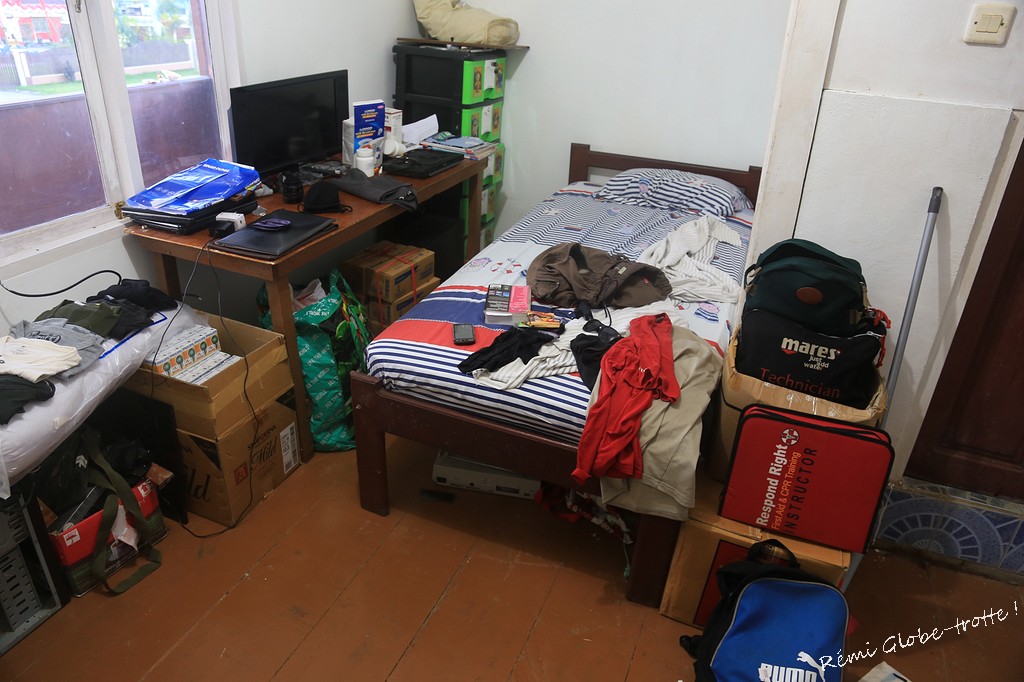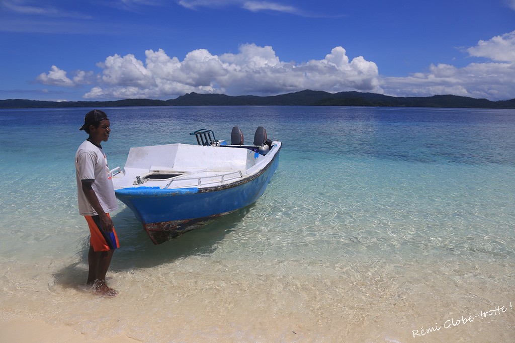 Comme je disais donc, Sorong en soi est pas franchement folichonne, personne ne s’en vante, mais c’est l’accès pour le fabuleux le mythique, la Mecque des divers et des plages paradisiaques que dis-je l’absolue combinaison parfaite des décors de rêves de la nature des pains de sucre qui sortent de l’eau turquoise et transparente avec dessous les plus incroyables animaux marins et les plus beaux spécimens bref j’arrête et je le présente, l’archipel de Raja Ampat.