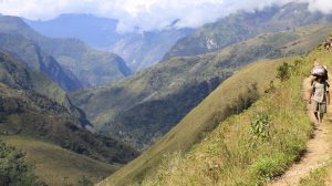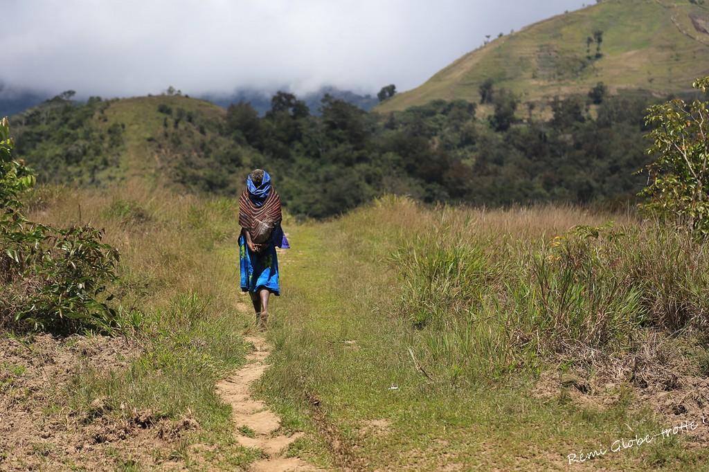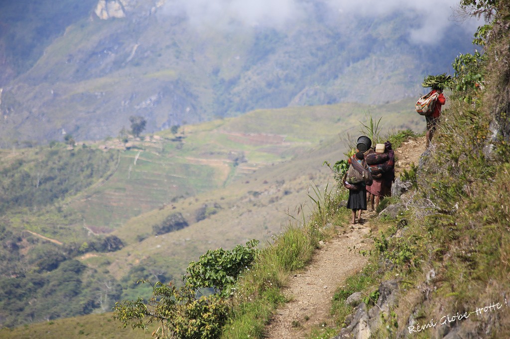 Je commence à marcher direction Kurima qui est un peu le dernier endroit vivant de la route. Passage du barrage militaire avec mon permis ou comme annoncé on essaye de me faire payer. Je refuse et passe. Beaucoup de monde marche, il y a plus de voiture et tous les habitants de la vallée doivent passer par ici pour rejoindre la ville et faire des achats. Selon votre village, cela vous prend entre 1 et 7 jours pour aller faire des courses…