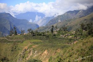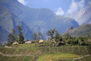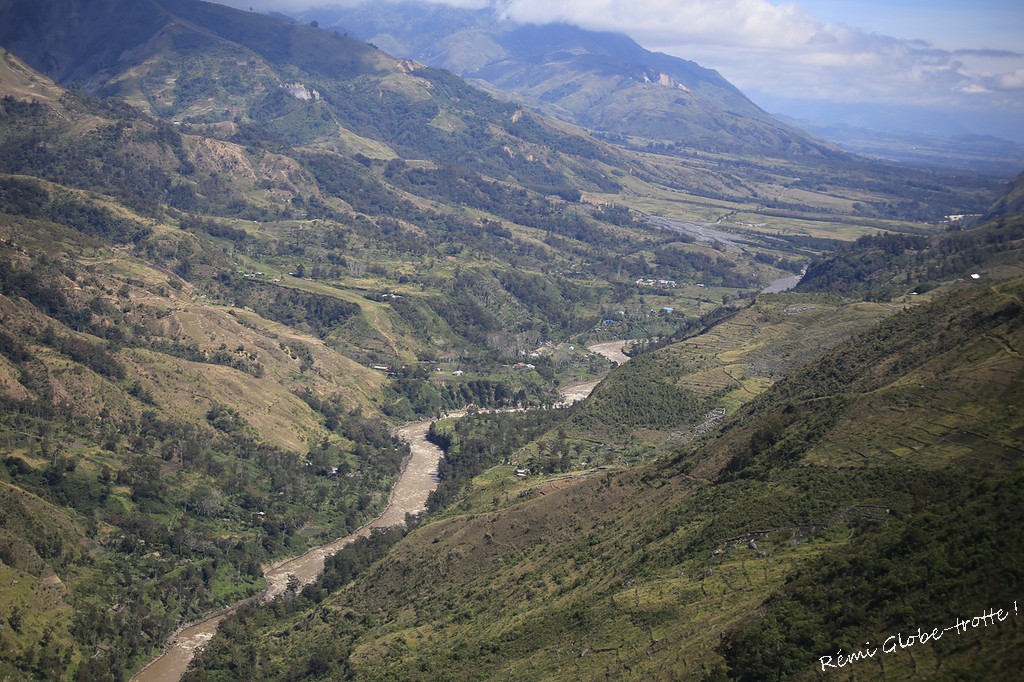 Je prends de la hauteur et traverse les premiers villages. Les gens vivent dans des huttes en paille. Au centre il y a un trou dans la terre qui sert de foyer et autours duquel on se regroupe le soir pour manger ses patates (la seule nourriture de la vallée).