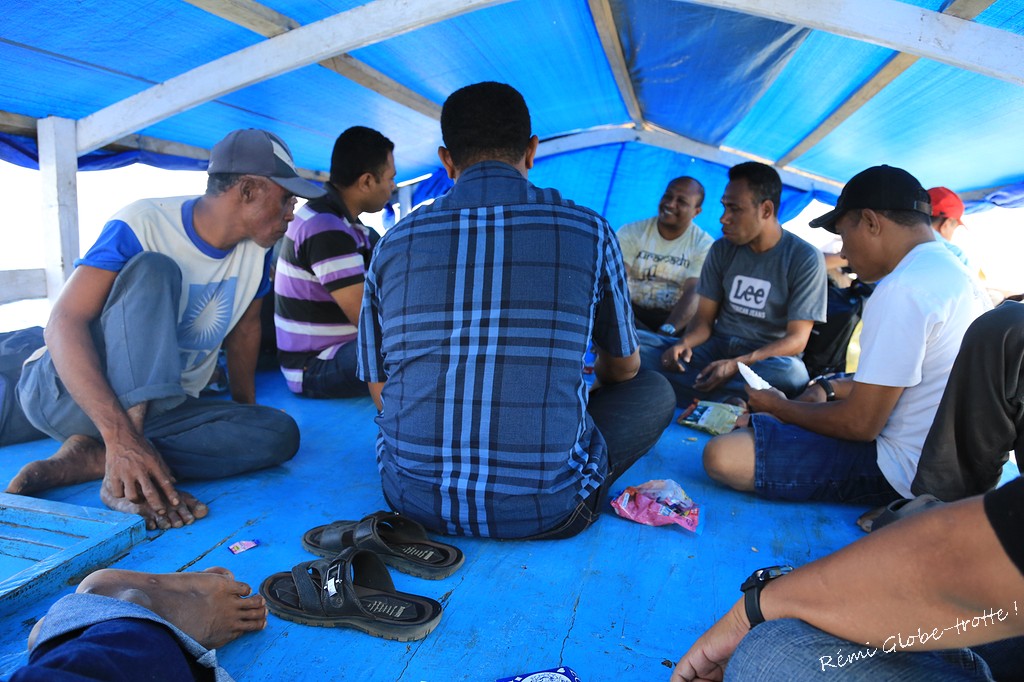 Je viens ici parce que c’est ma route, et que j’avais envie d’aller faire le Gunung Sirung, autrement dit un volcan tout à fait sympa. Après 4h de ferry avec les indo qui jettent encore et toujours tous leurs plastiques à la mer, je me trouve une moto et par en direction de Kakamauta, le petit village au pied du volcan. Là-bas on me fait ma fête évidement et je demande au chef du village si il peut m’héberger moyennant une somme modique, ok, demain je pars avec son pote guide (tout le monde à un pote guide) à l’assault du petit volcan, 2h de marche pas bien méchantes.