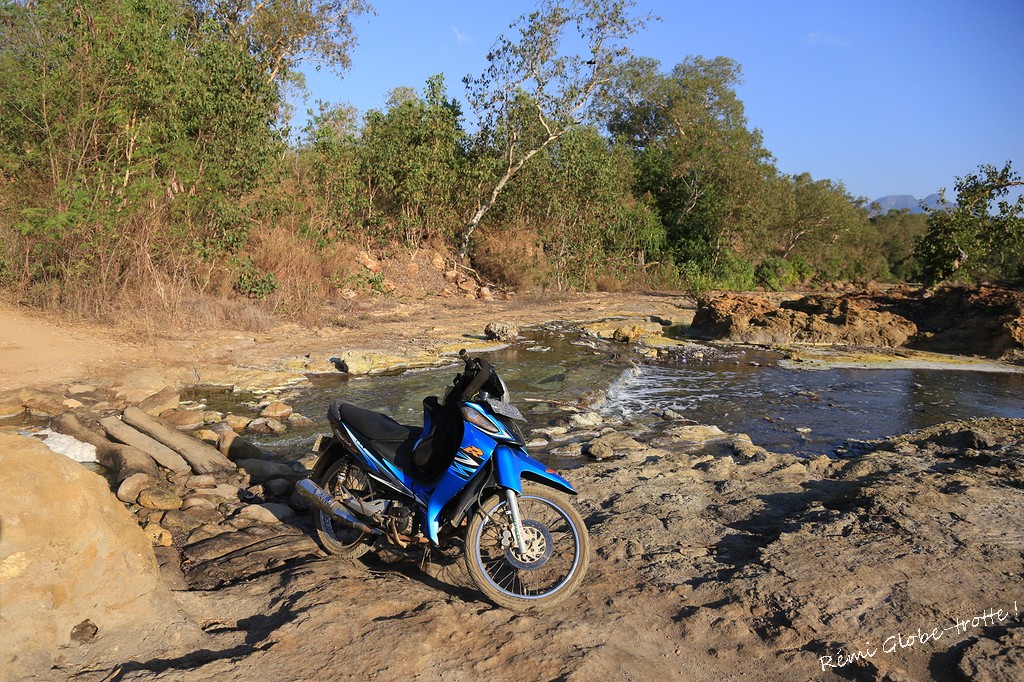 Je profite encore du scooter pour aller me baquer dans les sources chaudes et trouver une petite plage de sable blanc tout déserte (même pas d’enfants qui veulent des photos !!) avec des milliers de bernards l’hermite qui courratent et la tranquilité du clapotis de l’eau. J’en profiterai pour perdre mes clés de moto, demarrer avec la clé de ma chambre, tomber en panne d’essence et finalement rentrer pour prendre un bateau le lendemain…mais lequel ?