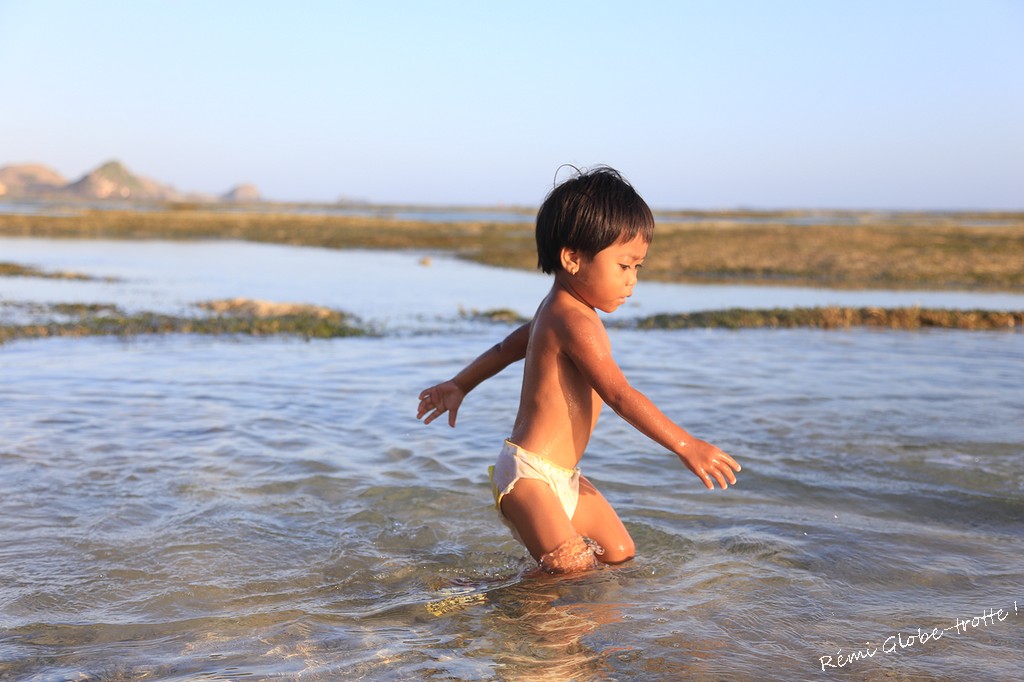 Je m’amuse à aller faire trempette à chaque plage que je trouve, plouf, check ! L’aprèm je le passe tranquillement face à la mer dans un resto avec des transat, je lutte des heures avec la dizaine de gamins qui passent leur temps à essayer de vendre des bracelets pour une misère, mais c’est de la lutte gentille, ils préfèrent largement analyser le contenu de mon téléphone pour chercher Angry Birds ou essayer de lire mon livre en anglais.