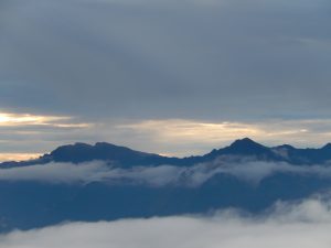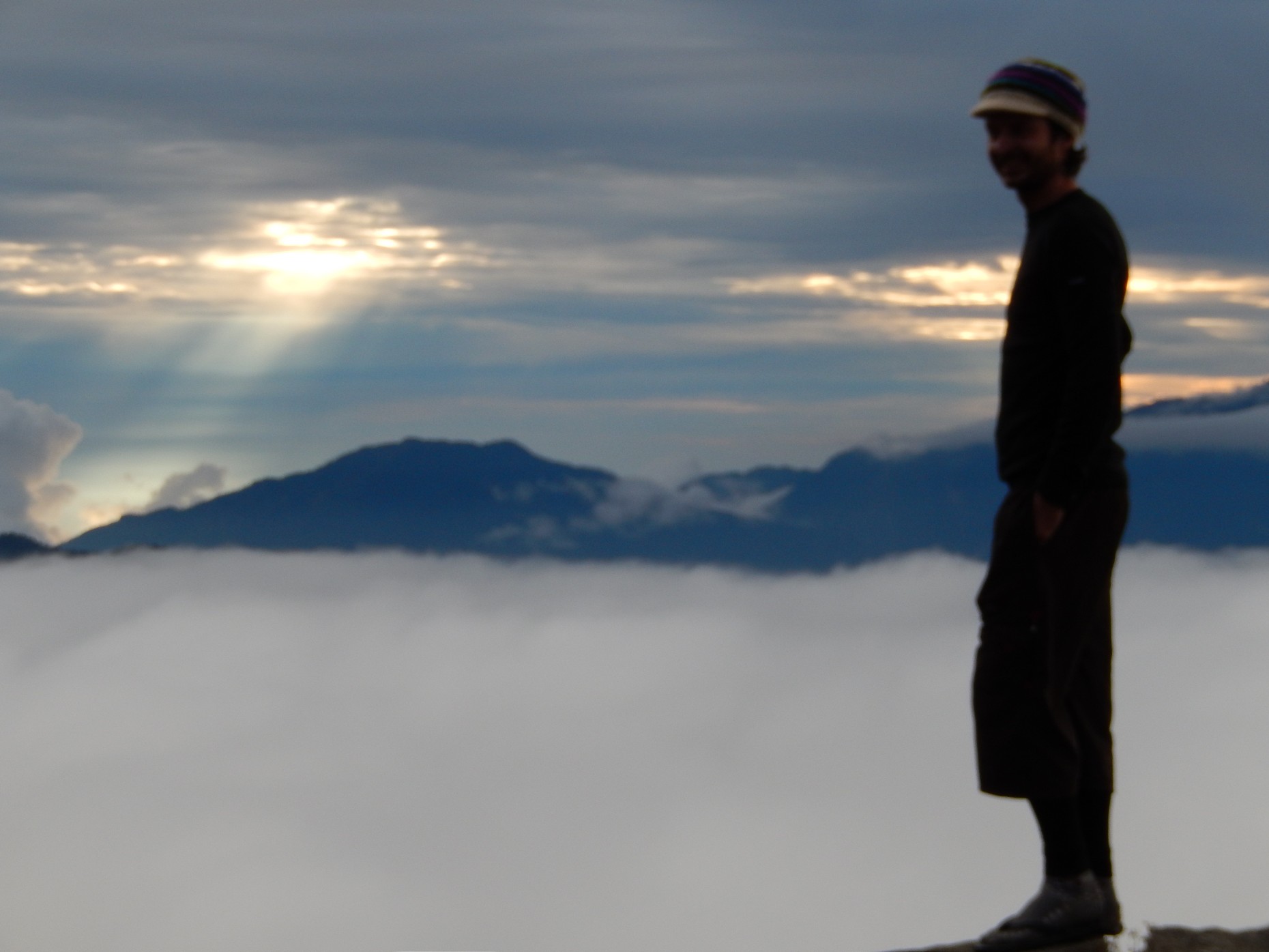 On court au point de vue a 4710m au dessus de la mer…de nuages ! Tous les sommets sont la, ils n’ ont pas bouges ! Vue exeptionnelle qui remonte le moral, montagnes toujours aussi belles…