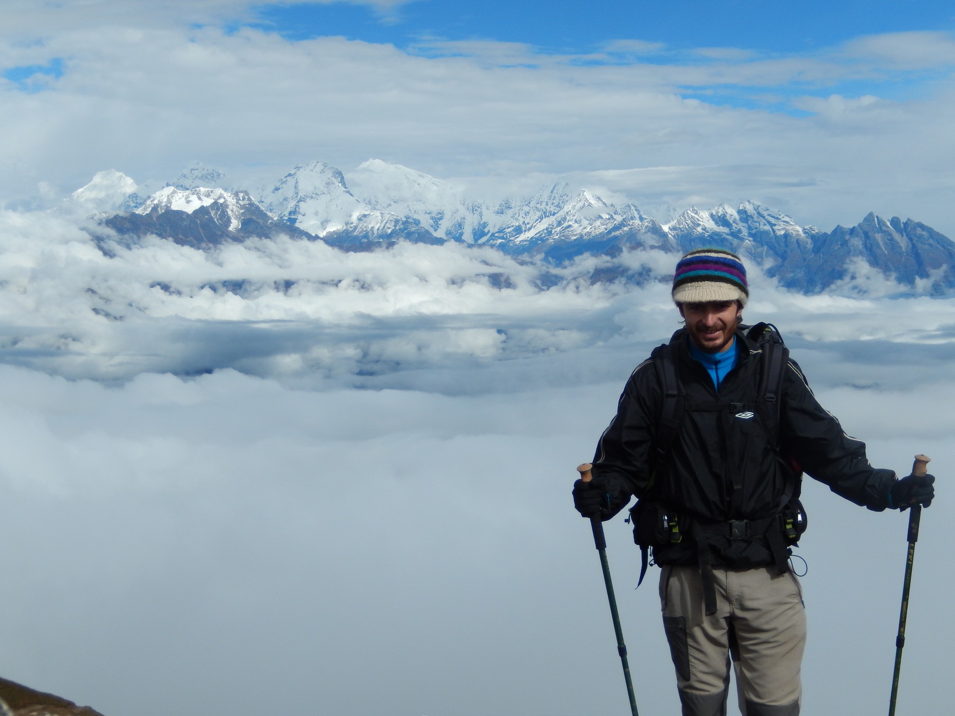 On quitte le lendemain le village pour une longue et tres raide journee de marche jusqu’ a Laurebina, 3900m d’ altitude. Toujours dans les nuages alors que la vue est censee etre exeptionnelle. On ne s’en rendra finalement compte qu’en fin de soiree au moment ou le soleil se couche, il nous fait ce beau cadeau, les sommets a 180 degres, le Langtang, le Manaslu 8eme sommet du monde et au loin les Annapurnas et le Tibet… Le monde semble petit et facilement accessible quand on voit des 8000m qui depassent un peu partout…