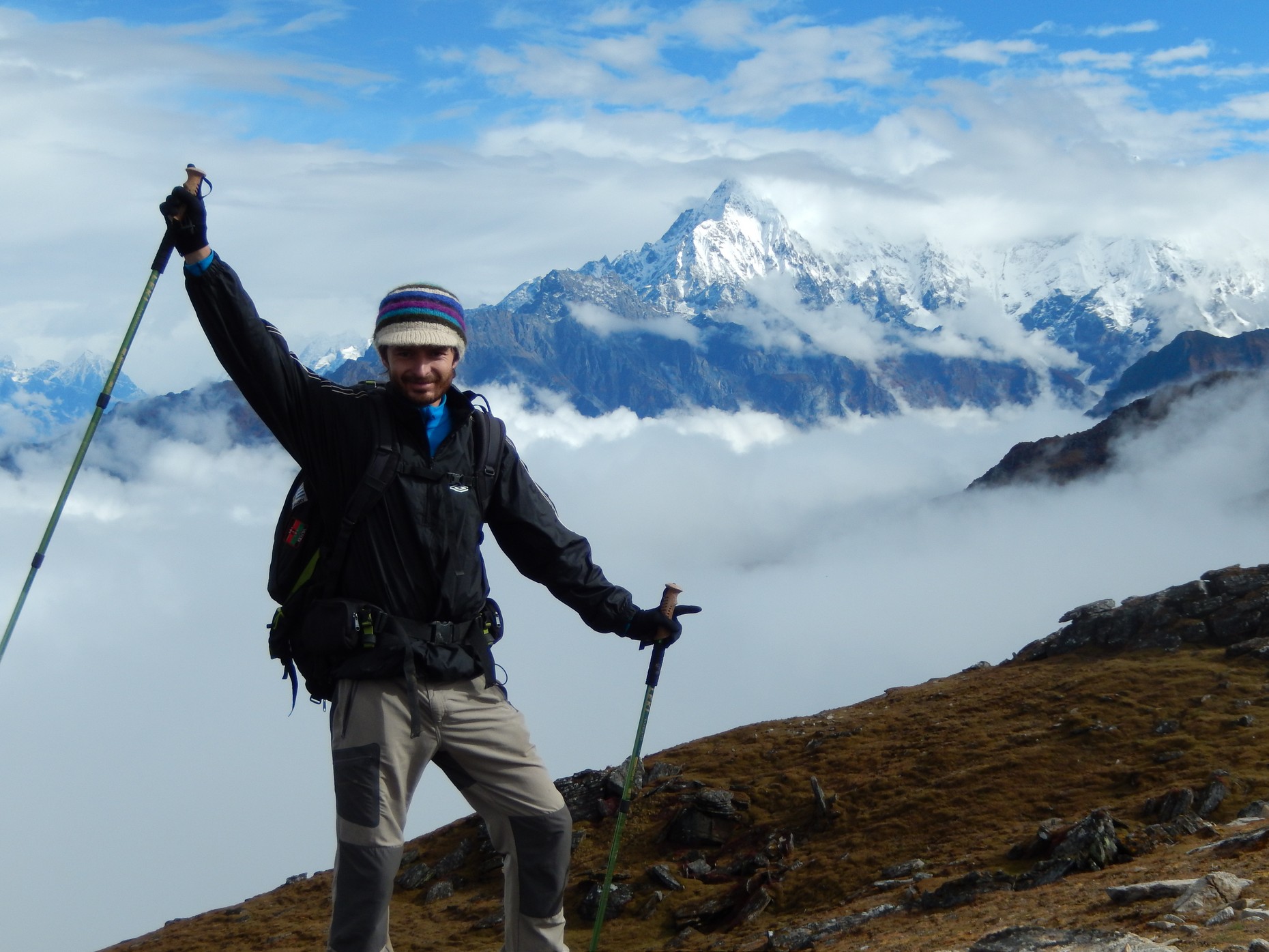 Au matin la vue est degagee et on profite encore un peu de la vue mais pas longtemps, le temps se gate tout de suite apres. Aujourd’hui mini etape, apres avoir attendu le plus possible sur place on fait 2h de marche jusqu’ a Gosaikund et les lacs sacres, notre destination finale a 4380m de haut. On est dans les nuages niveau vue mais on voit bien les lacs qui sont parmis les plus hauts du monde, l’ eau tombant de l’ un a l’autre comme des vases communicants. On passe la nuit la plus froide du sejour et au matin, surprise ! Le ciel est quasiment degage !
