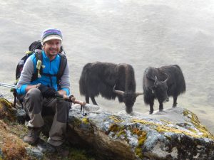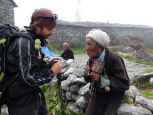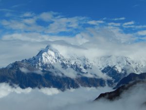 Le lendemain on sort de la vallee apres le beau village de Langtang ou ca commence a sentir le yak… Helas le temps n’ est pas trop de la partie et c’est toujours bouche quand nous atteignons le bout du trek a Kianjin Kompa, 3800m d’ altitude, au milieu des hautes montagnes mais on voit que les yaks… Les photos nous montrent ce qu’on est cense voir et c’est bien frustrant. Nous sommes au pied de tout le Langtang Range et surtout du Langtang Lirung a 7300m de haut…