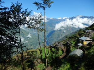 Encore un peu de descente et on quitte la vallee du Langtang avant la fin pour tourner en direction du trek des lacs sacres de Gosaikund. Le matin nous marchons 4h30 mais la pluie nous casse les bonbons alors on reste plantes dans le village de Thulo Siafru, pose en equilibre en haut d’une crete impressionnante.