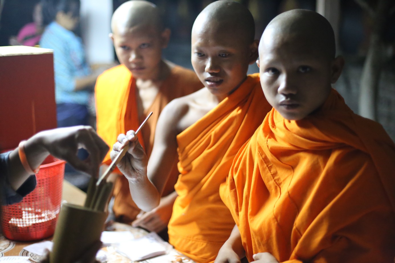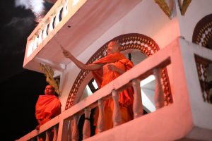 Le soir c’est la cérémonie des chandelles qui a lieu ce soir de pleine lune. Au petit temple une grosse partie des habitants passent déposer des chandelles et faire leur prières (et surement plein d’autres choses mais on comprend pas tout), sympathique spectacle. Des lanternes qui volent a la bougie passent au dessus de nos têtes alors que les gamins font péter des pétards et que les jeunes moines fument des cigarettes…