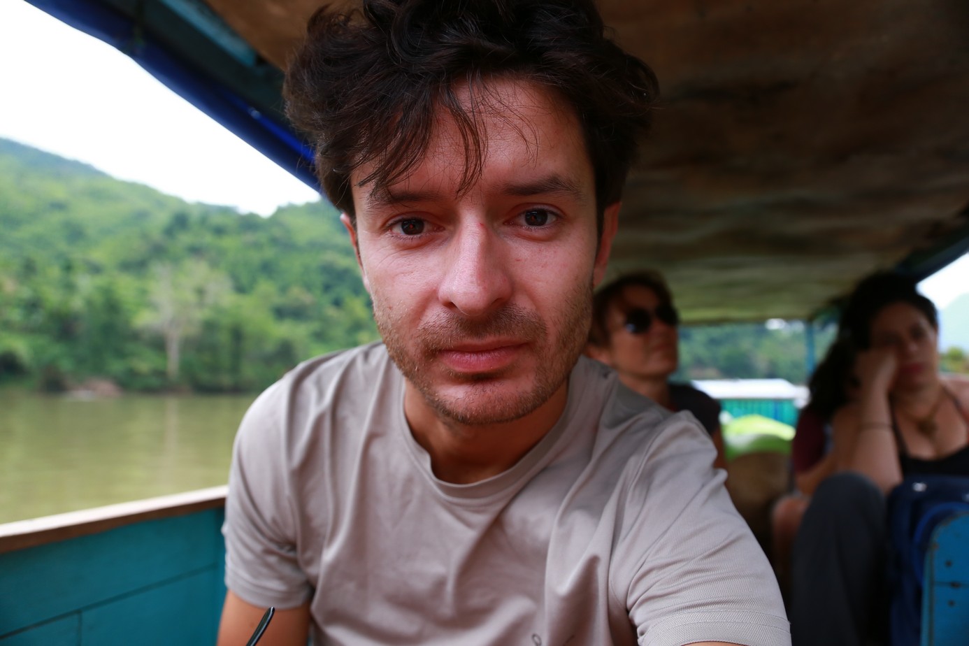 La Thaïlande est derrière, le Mékong est sous la barque, 20m, 10m, top, on est au Laos.