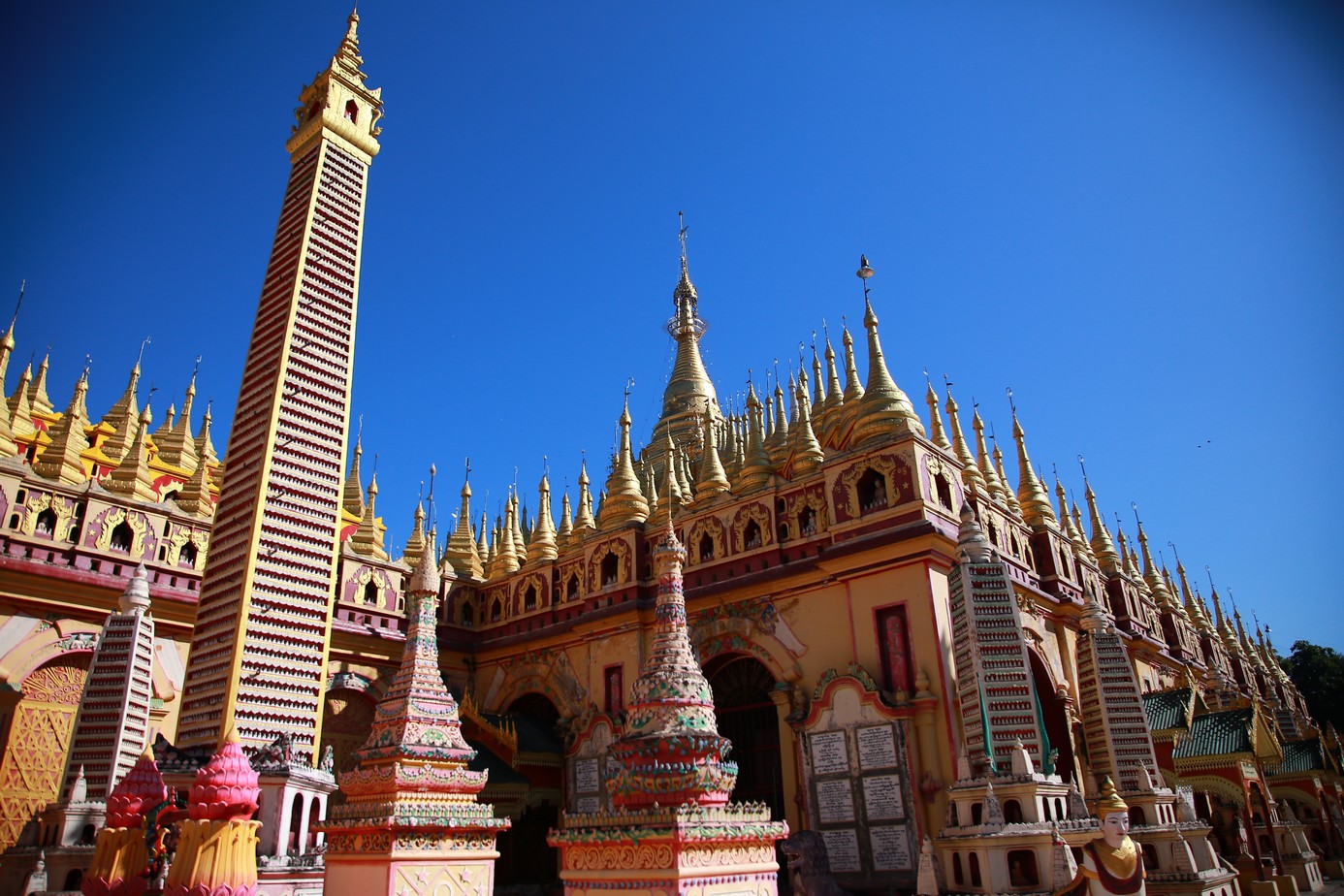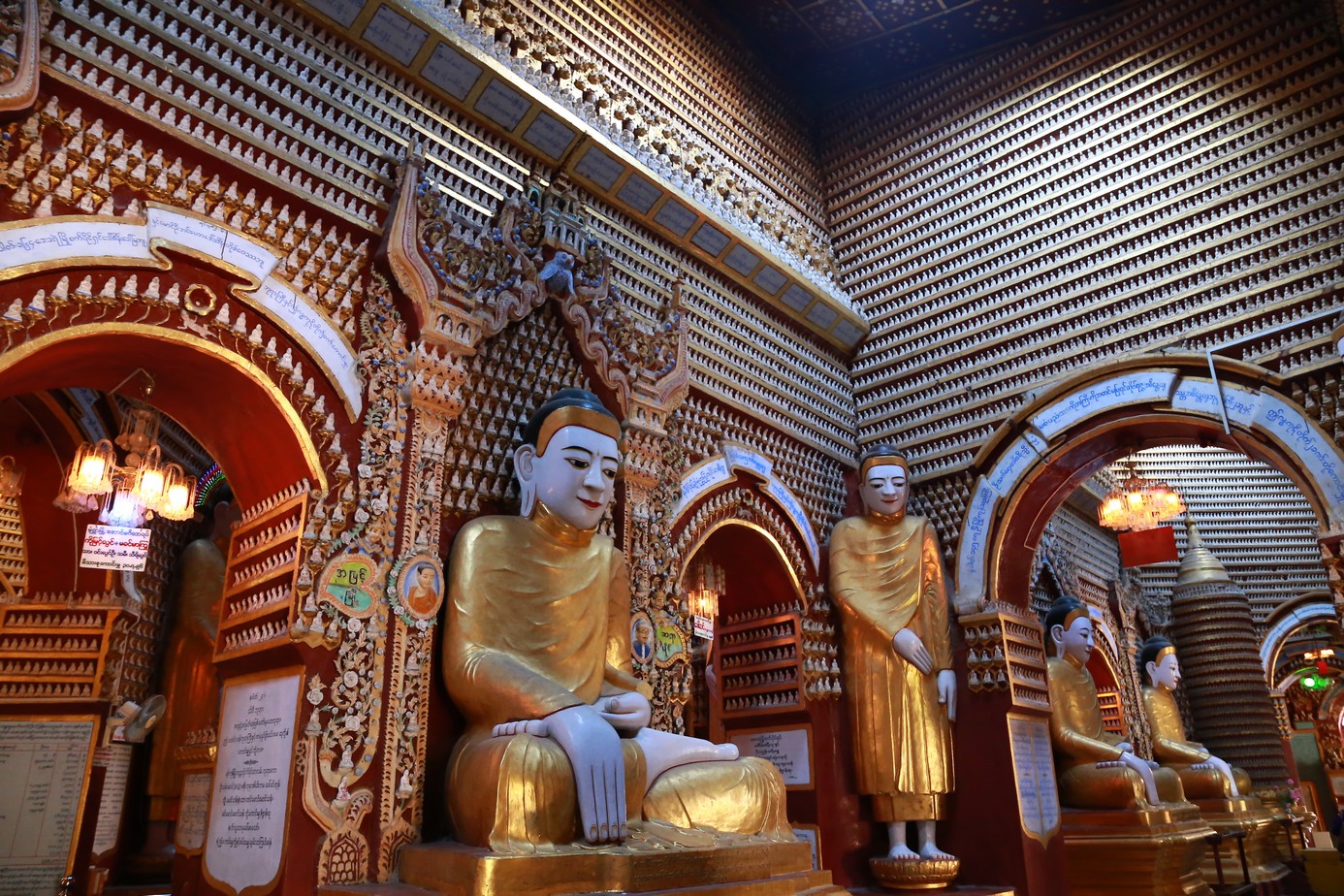 La ville n’est pas très intéressante mais les alentours valent le coup d’oeil, on commence par le temple complètement fou de Tembhoday et ses plus de 580.000 bouddhas. Oui oui, ils ont pas lésiné sur le nombre, c’est simple il n’ y a que ça du sol au plafond sur des salles et des salles, de petites statuettes a pertes de vue !