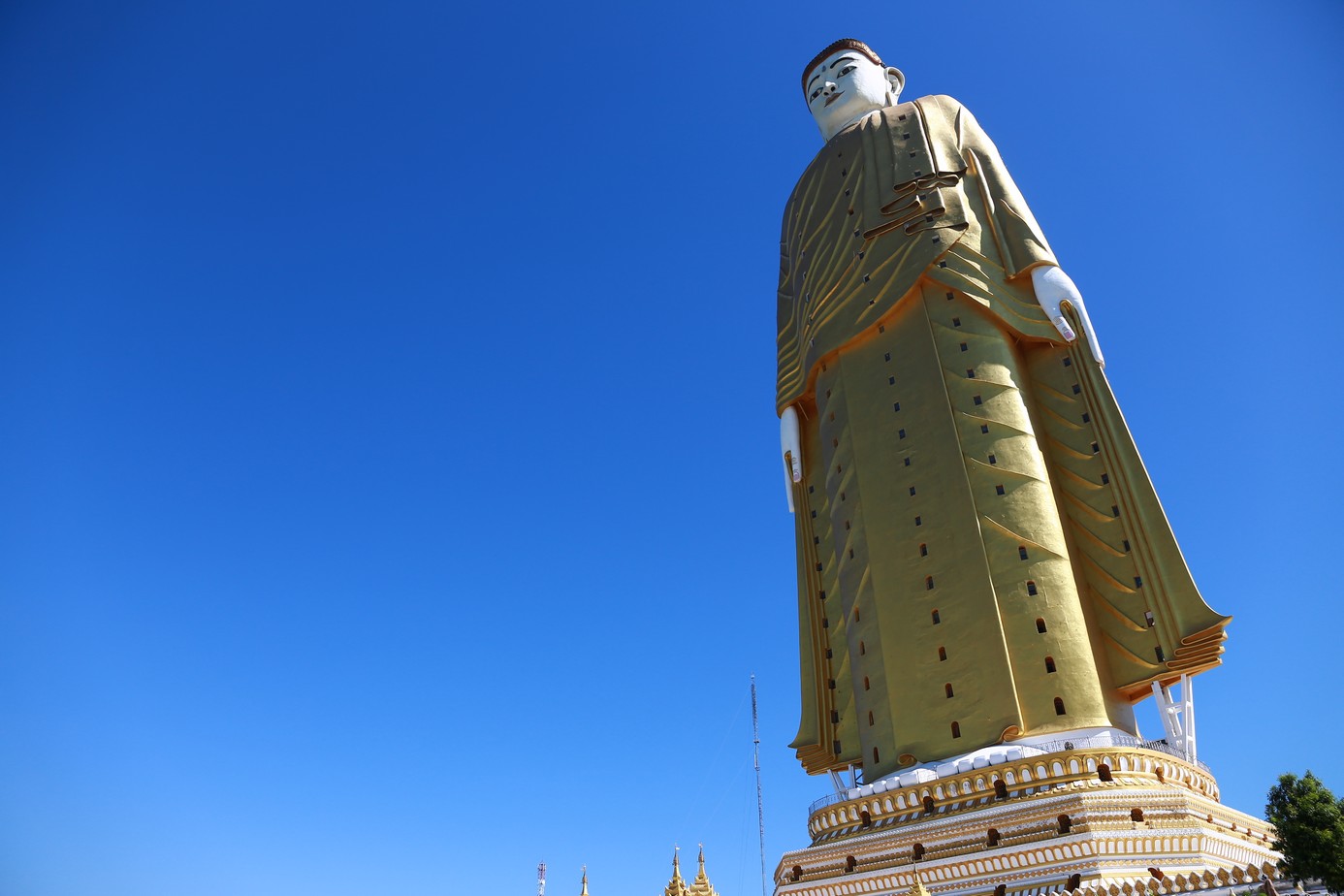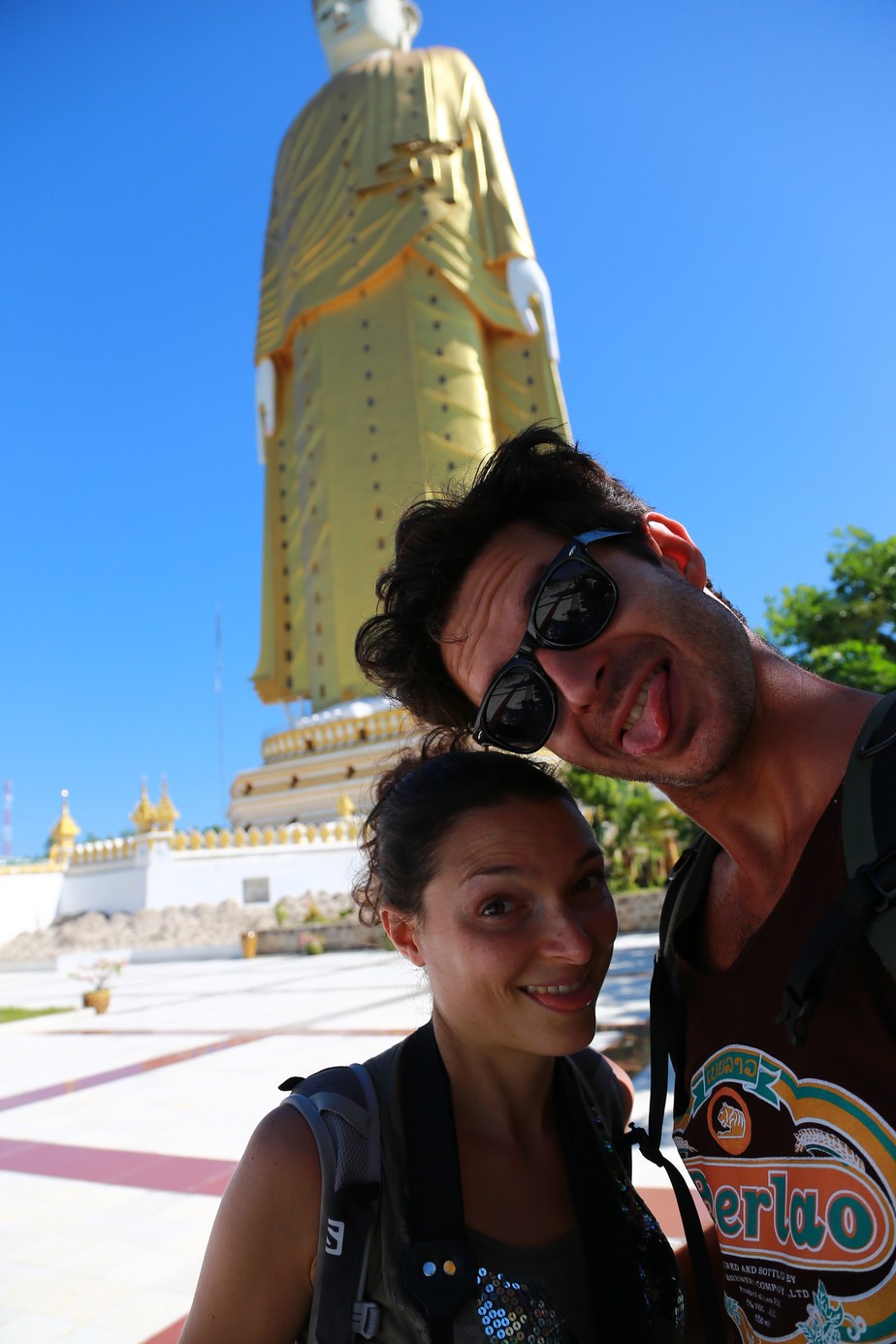 Vu qu’on est pas rassasiés on enchaine voir le second plus grand bouddha du monde, 129m de haut le garçon et le même de 80m a cote en version allongé. On y monte a l’intérieur sur une quinzaine d’étages mais autant la montée est fatigante que l’arrives est décevante surtout vu qu’ il n’est pas tout a fait fini et qu’on ne peut accéder au sommet… Donc le plus impressionnant reste de le contempler du bas… ou de partout vu qu’ on le voit de partout de toute façon !