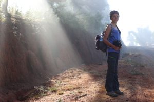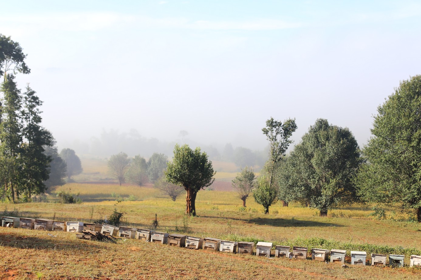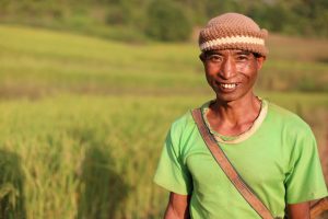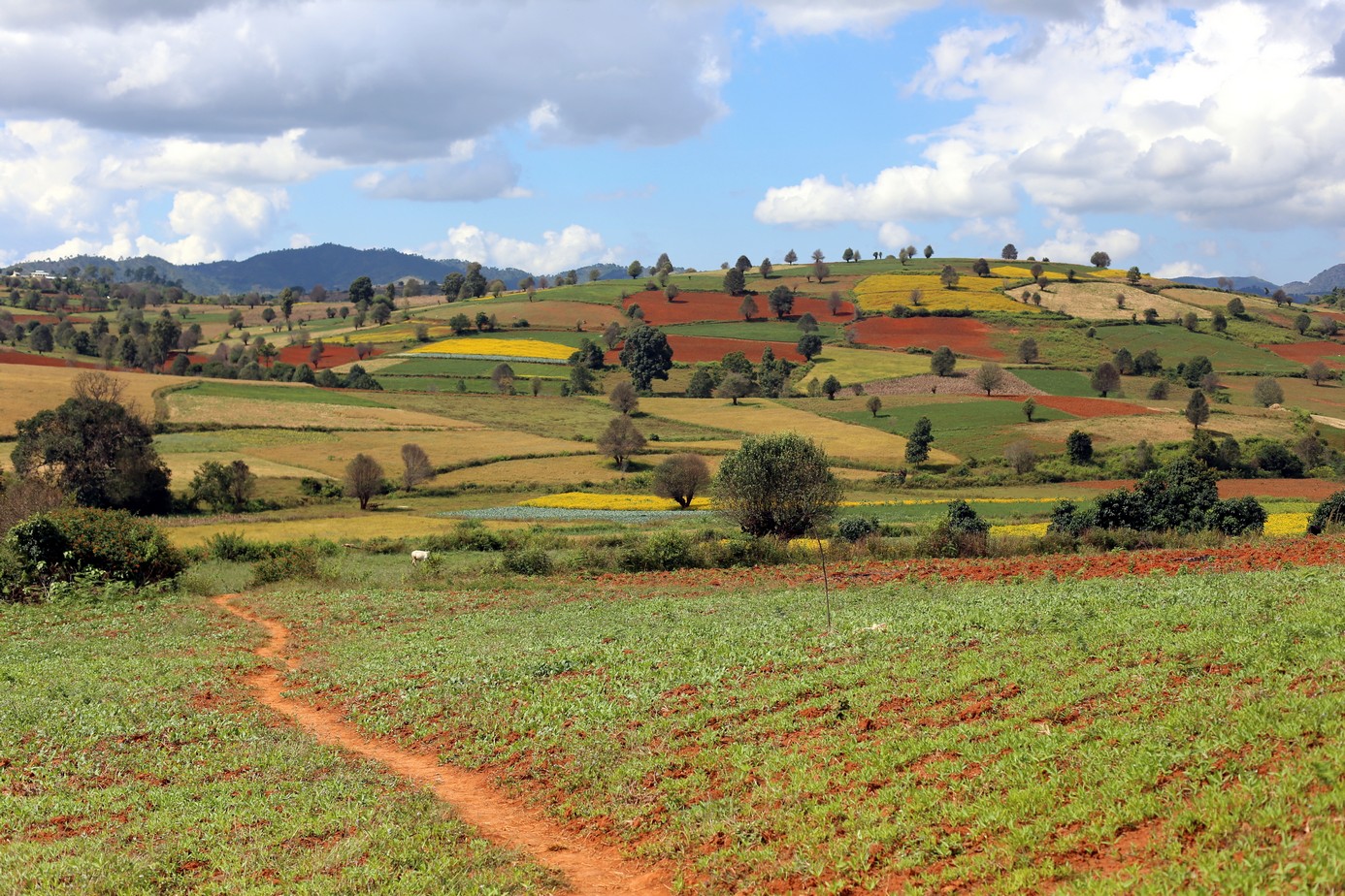 Le lendemain la promenade longe un peu le chemin de fer, on traverse tous les types de champs possibles, sésame, courge, piments, chou, chou-fleur, concombre, des arbres absolument immenses, des haies envahies d’araignées grosses comme le poing et partout des enfants et des gens qui nous sourient et qui sont tout content d’échanger quelques mots quand on y arrive. On passe en plein milieu des rizières qui prennent une teinte magnifique avec le soleil qui se couche. On arrive a chaque fois la nuit tombante et pour notre deuxième nuit on dort dans un monastère. Couvertures a volonté et elles sont les bienvenues apres la douche au seau, nu dehors a la pleine lune a 1500m d’altitude…
