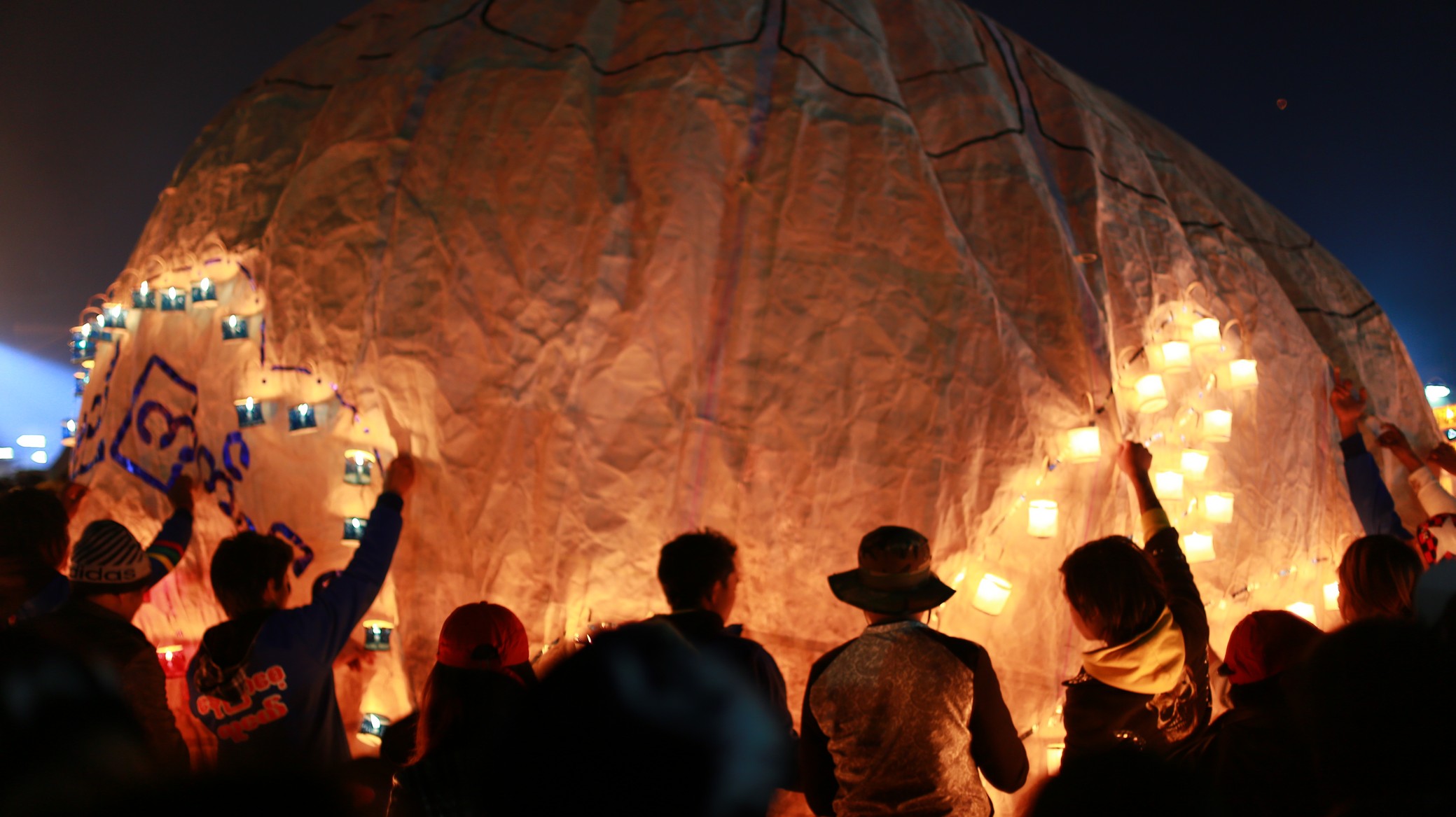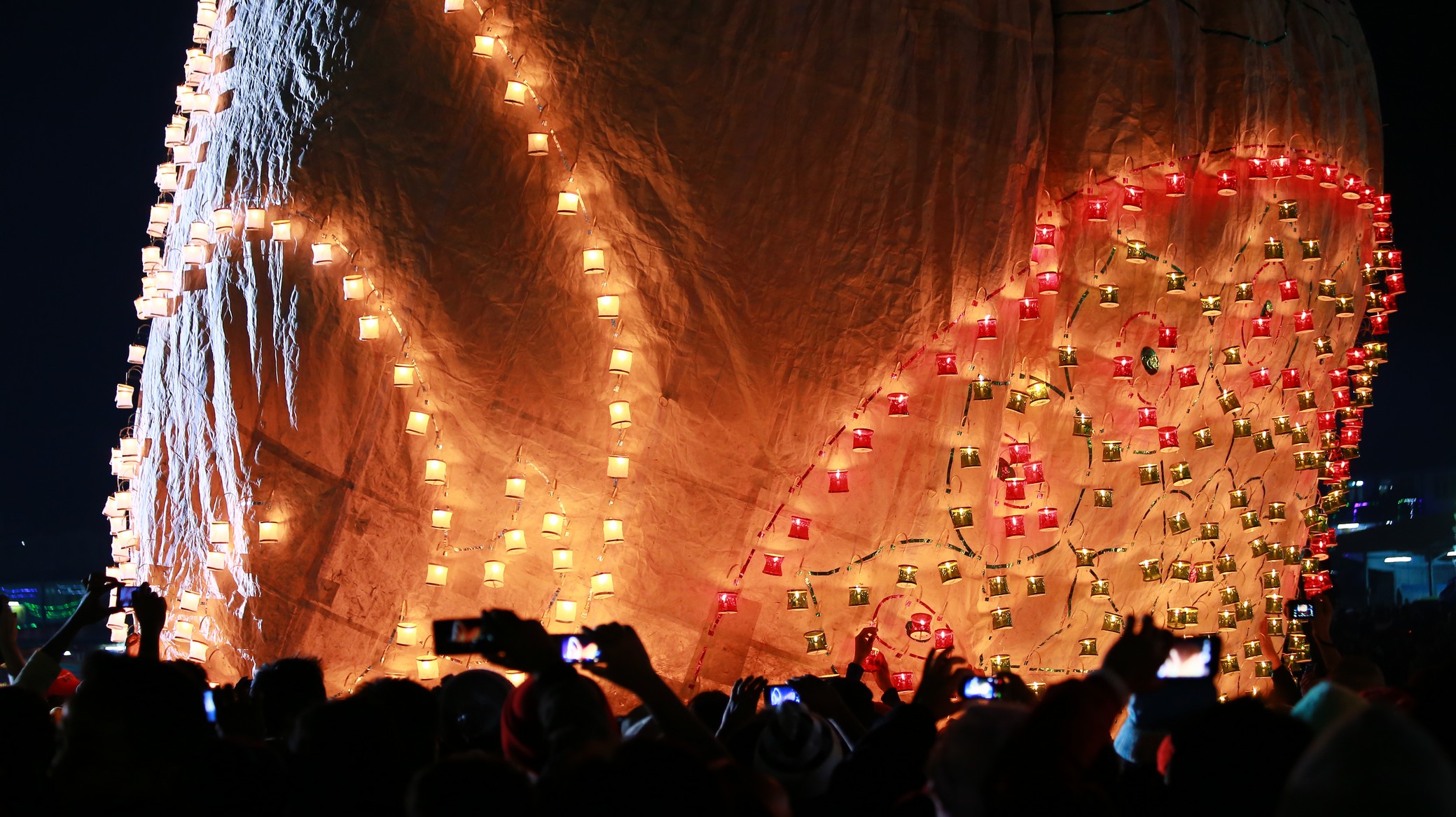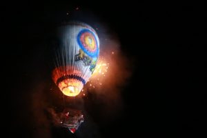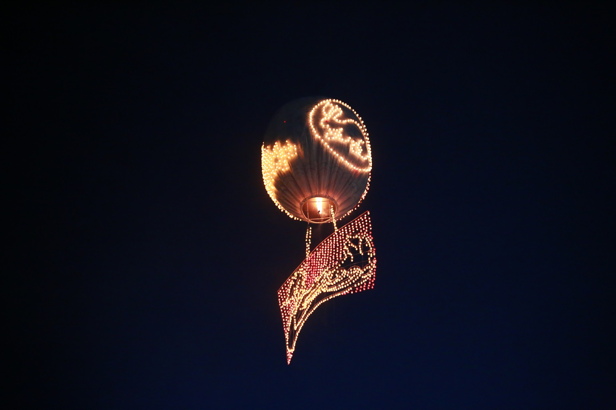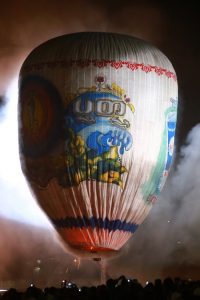 Pendant une semaine une compétition a lieu ou chaque équipe construit d’assez grosses montgolfières pleines a craquer de feux d’artifices, de chandelles, ou de décorations en tout genre, bref, elles sont belles, ca pète dans tous les sens, des fois même ça prend feu de manière imprévue juste au dessus de la tête de la foule qui part dans un gros mouvement de panique. Les ballons partent chacun leur tour et entre les départ l’équipe arrive en bagnole a travers la foule, fend la masse de gens jusqu’a trouver une zone digne de confiance dans le grand terrain vague et commence a déplier son attirail. On se demande comment ca ne prend pas directement feu vu la toile, le nombre de personnes et de chandelles qui trainent autours.