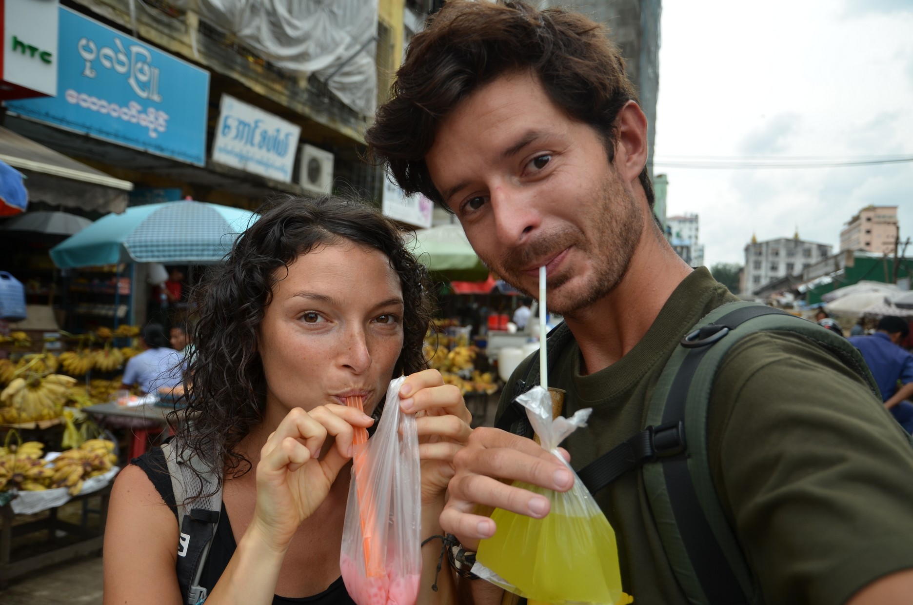 Il est 4h du matin dans les rues de Yangon, nous sommes plus ou moins seuls, fatigués, et il faut trouver un hôtel. Tout est complet mais au bout d’une heure de vagabondage on en trouve finalement un, probablement notre plus luxueux depuis le début du voyage du coup.