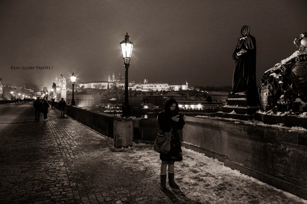 On loge dans un grand appart près de Mustek. Il fait froid, il y a de la neige et presque personne dans les rues par rapport à d’habitude. Mon frère hallucine de voir si peu de monde et nous dit qu’on a bien de la chance d’avoir presque personne sur les photos. Mais l’hiver ici est brumeux, ciel gris tous les jours et c’est pour cette raison que j’ai passé une bonne partie des photos en noir et blanc.