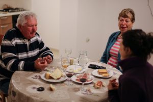Ici les prix sont plus élevés et c’est finalement en passant dans le village de Kali que je demande à un groupe de petits vieux s’il y a une chambre où dormir dans le coin. Branle-bas de combat on nous dégote un appartement, au prix qu’on voudra bien payer. Du coup je leur paie la chartreuse mais que n’ai-je pas fait là ! Il ne veulent plus nous lâché, et on fini 3 heures plus tard chez eux à manger de la charcut, du fromage avec une bouteille de rouge sur la table à refaire le monde.