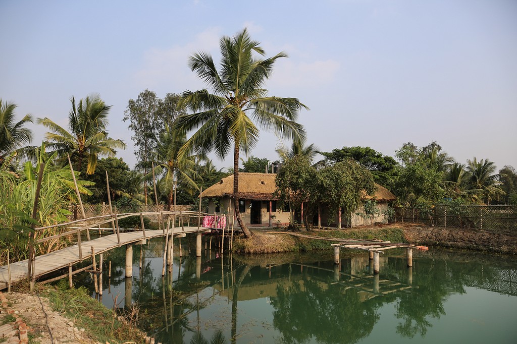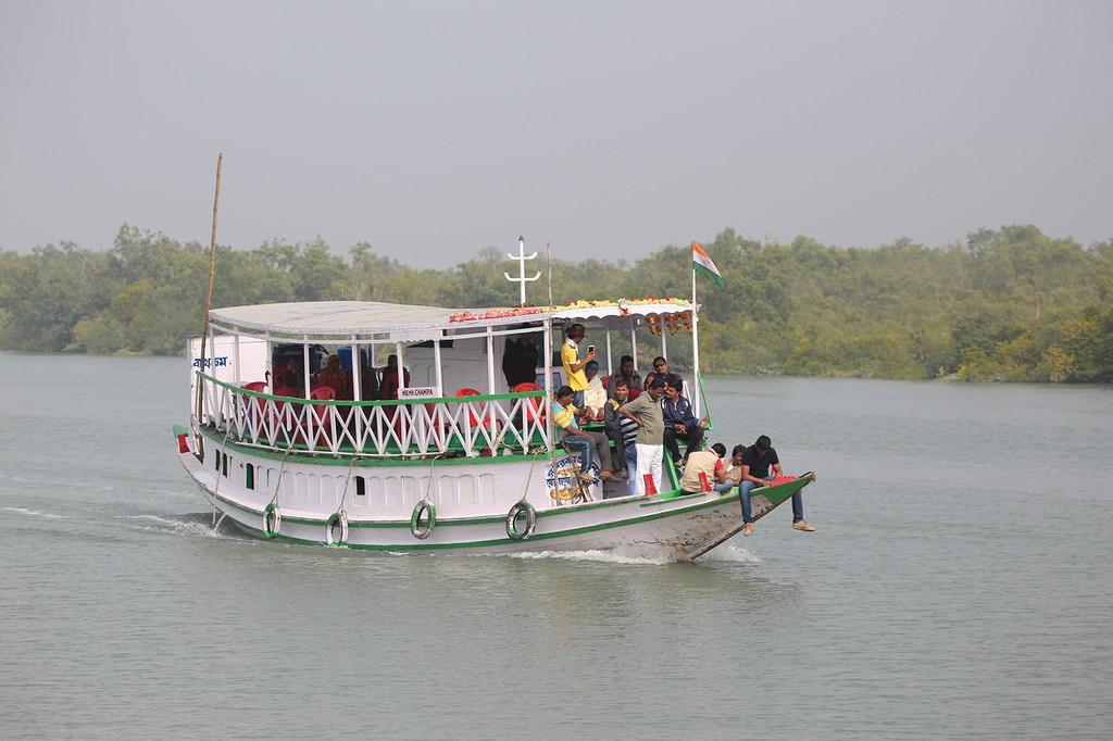 Après 3h de traversée du sud du golfe du Bengale à travers une végétation qui a bien changé (bonjours les palmiers !) nous arrivons au port. Ici bateau dans les Sunderbans pour rejoindre notre eco-lodge sur une petite île. Ici les villageois ont construit cet ensemble green afin d’y accueillir les touristes et faire rentrer un peu d’argent dans la communauté. Les chambres sont belles (par rapport à notre standard d’avant c’est presque le luxe) et le personnel très sympa.