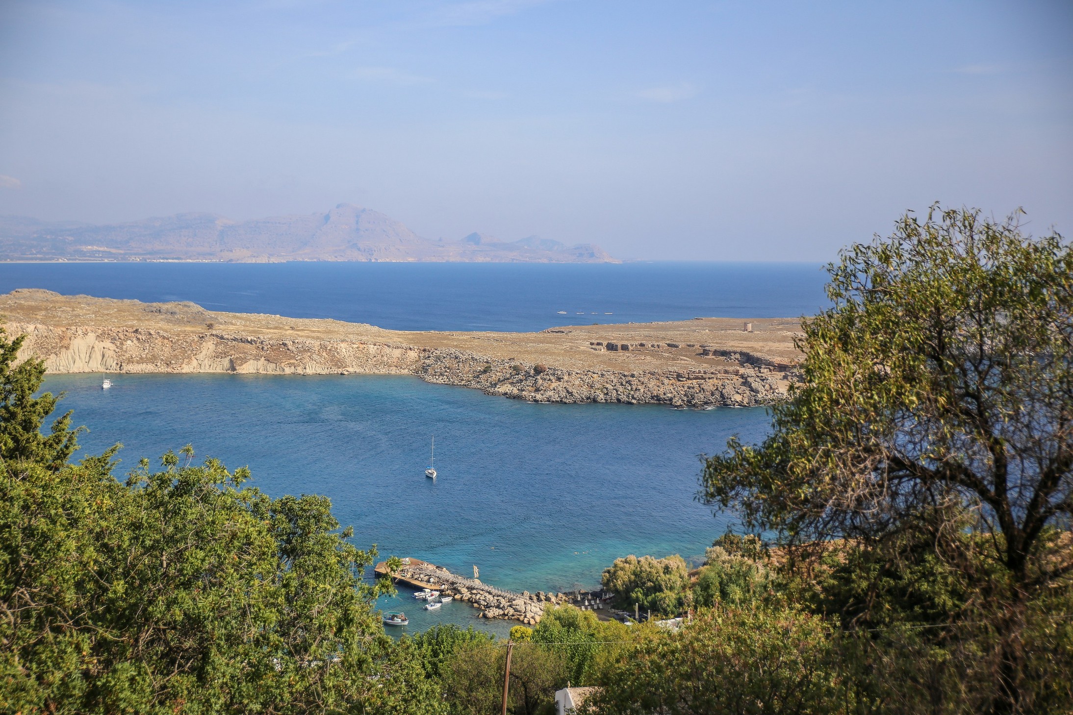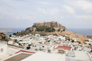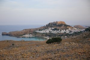 Cet après-midi nous prenons la route pour Lindos, à une cinquantaine de kilomètres sur la côte sud de l’île. Classé à l’Unesco ce village est sans doute l’autre must-see de Rhodes. En chemin, nous faisons une halte nécessaire en ce début d’automne pour profiter de la plage déserte hors saison, en piquant une tête et en se prélassant au soleil…que demander de mieux !