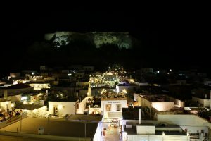 Ici nous sommes au pays des chats, ils sont partout, ils sillonnent la ville et passent de toits en toits, cherchant nourriture ou caresses. En début de soirée, nous sortons savourer un cocktail sur les toits (et oui ici les gens sont comme les chats : ils aiment prendre de la hauteur…du coup, tout se passe en roof-top !) puis goûter quelques plats locaux, comme les dolmas (feuilles de vignes farcies de riz aux herbes), feta, bière locale…et crêpe fourrée au Kinder Bueno Blanc (on n’avait encore vu ça nulle part ailleurs…et c’est bien dommage !).