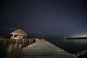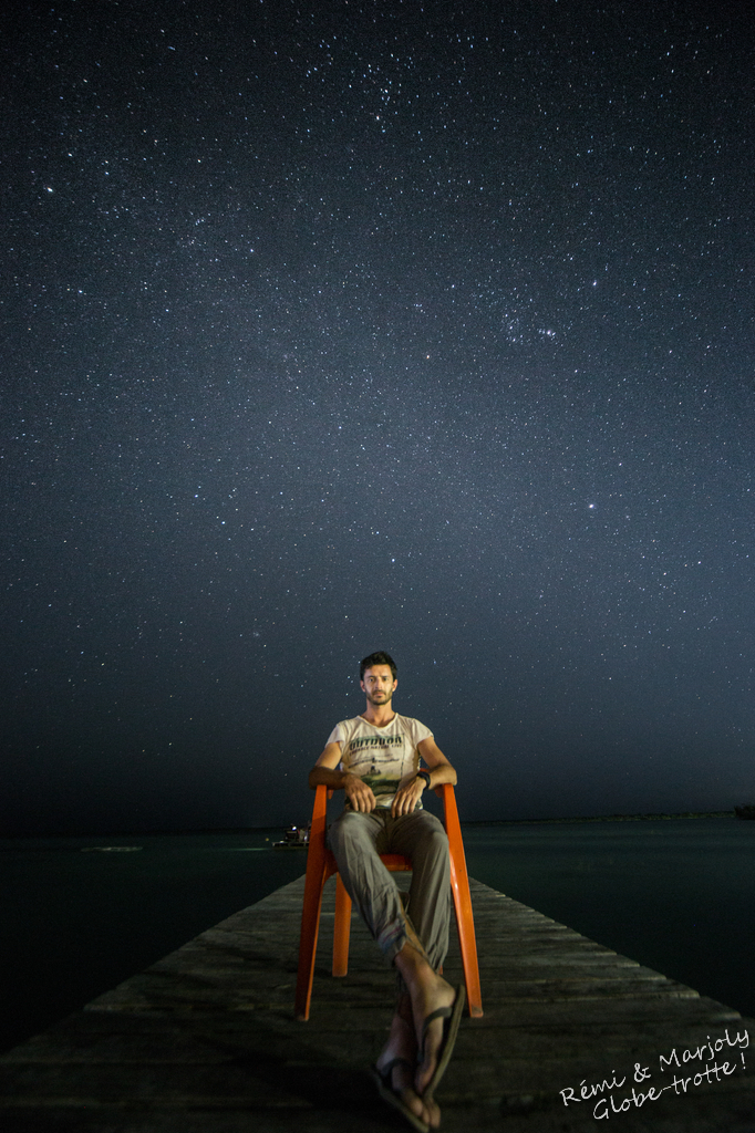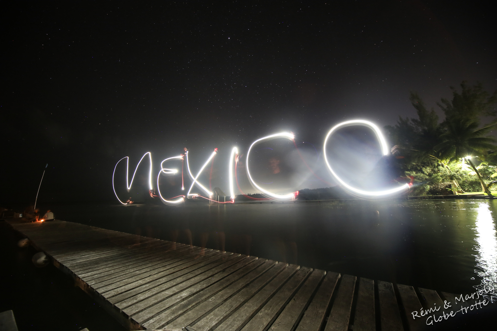 De nuit mon ami, nous arrivons à la laguna Bacalar : celle des 7 couleurs. Alors on ne les voit pas encore parce que comme je viens de le dire : il fait nuit.
