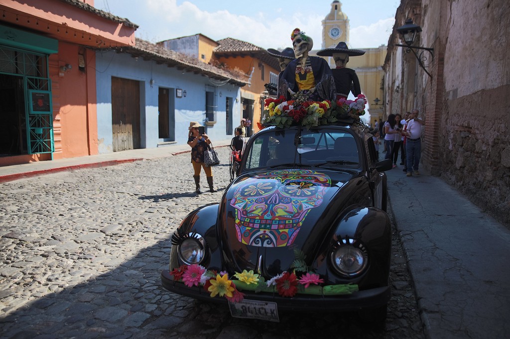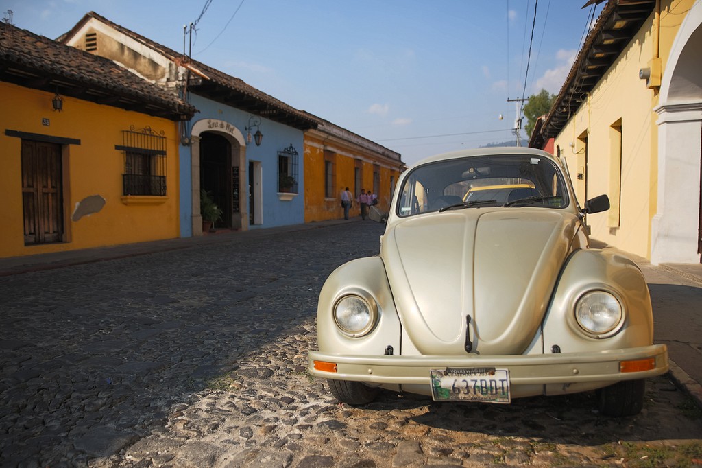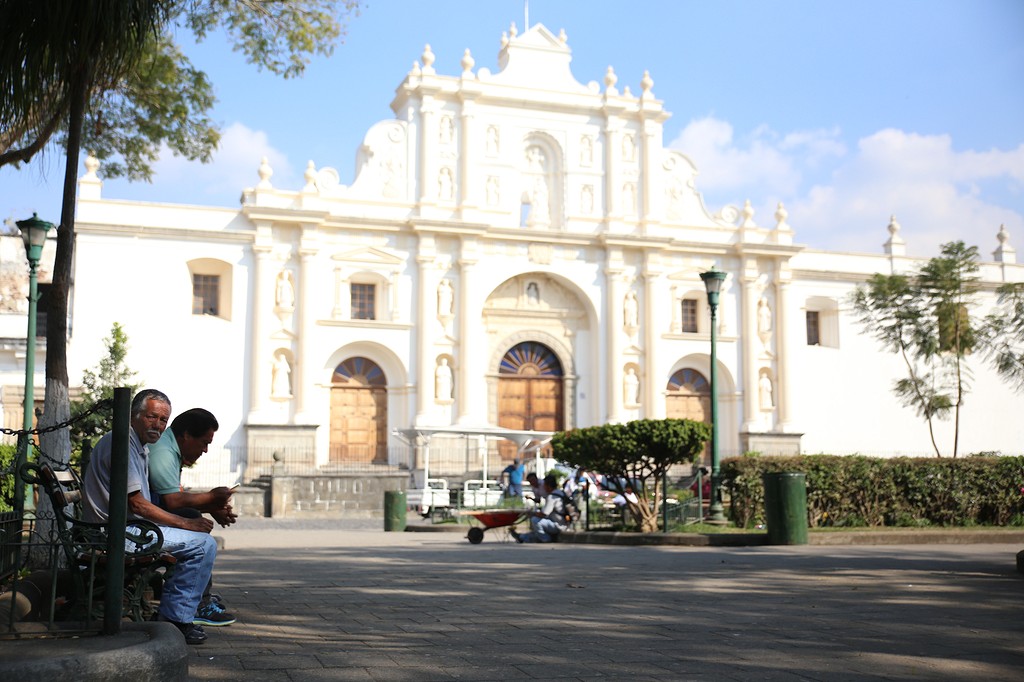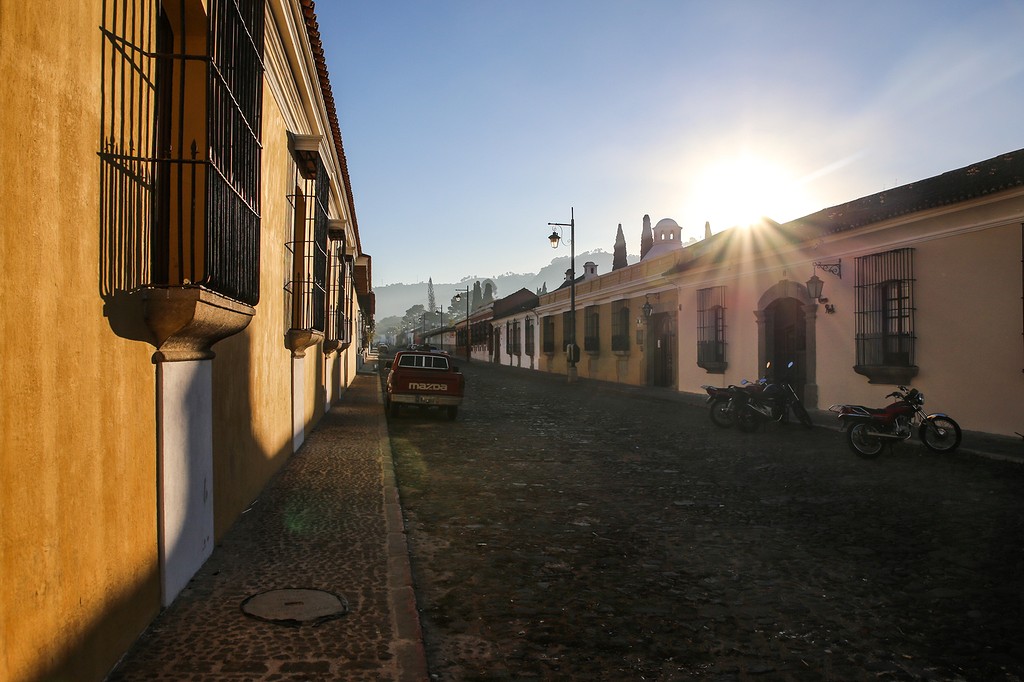 Finalement nous roulons sur des pavés et chaque maison est colorée, nous sommes à Antigua. Située à moins d’1h de route de la capitale et de son agitation, cette charmante ville coloniale aux rues pavées, ses nombreuses églises et sa place centrale très animée, en font le point de chute de nombreux voyageurs. Perchée à 1500m d’altitude et auréolée de volcans, c’est de loin la plus belle ville du pays !